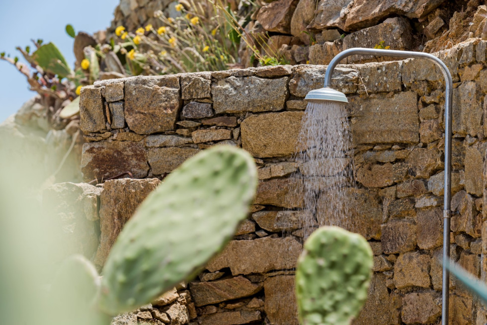Big infinity pool with sea view (sea water) and Jacuzzi, sun loungers, pool shower, multiple dining and lounge areas, covered dining table, BBQ.