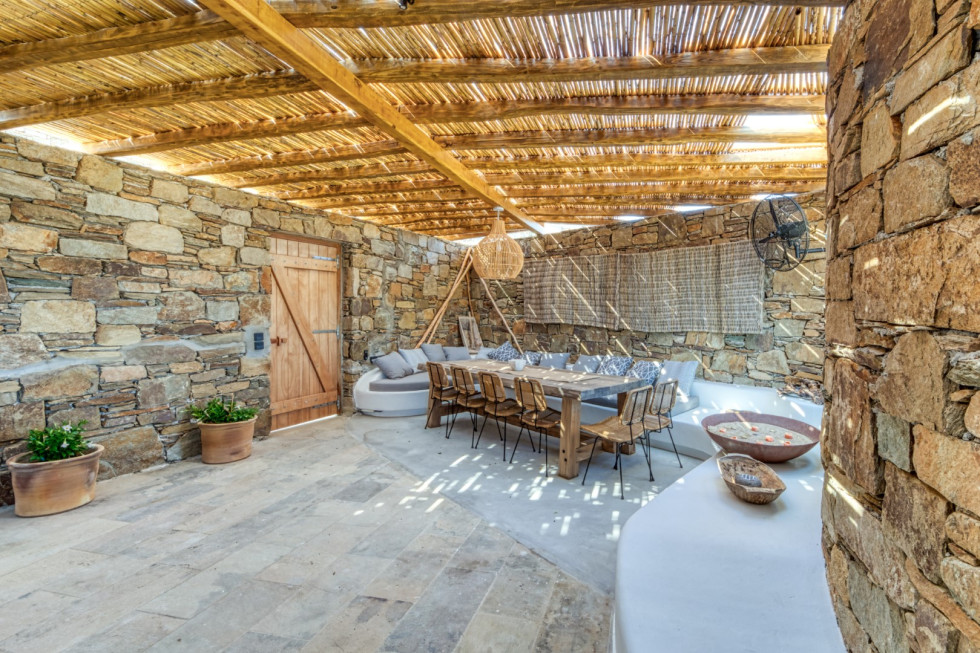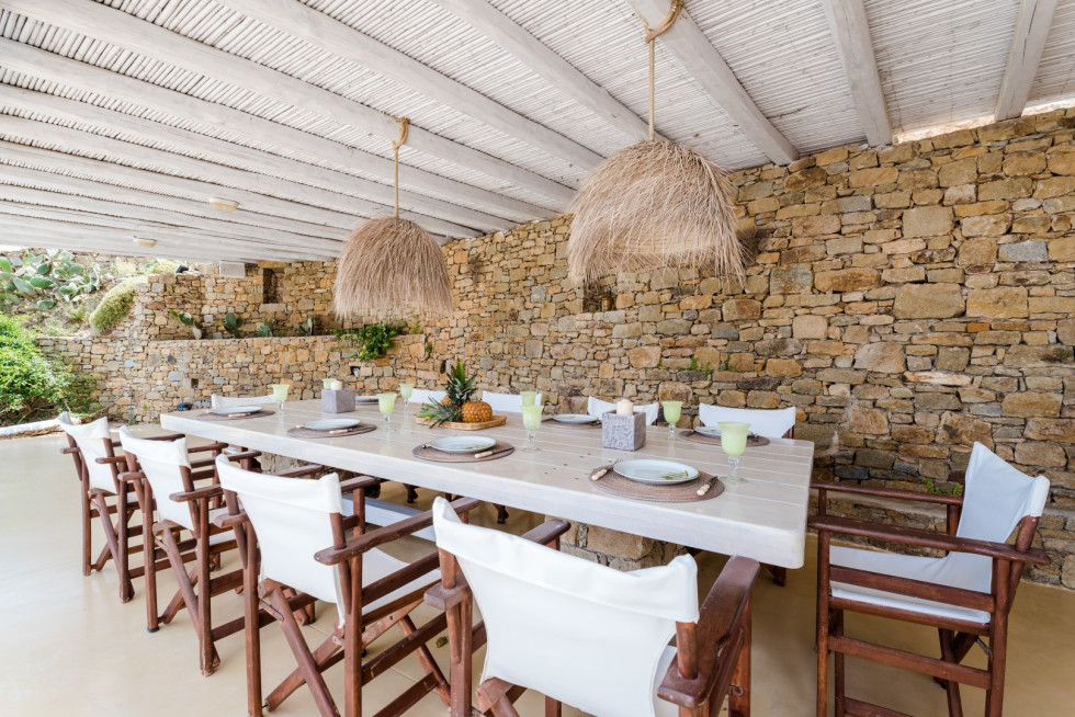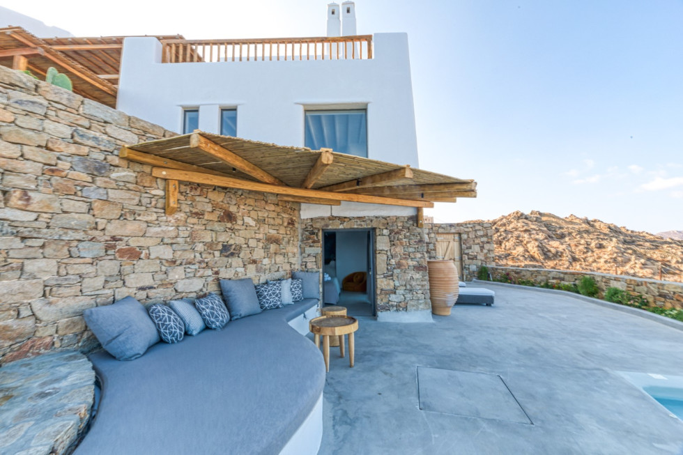The villa is located in the southern part of Mykonos, in Kalo Livadi and nearby the popular beaches of Kalo Livadi, Kalafatis, Elia, Lia, and Agia Anna.