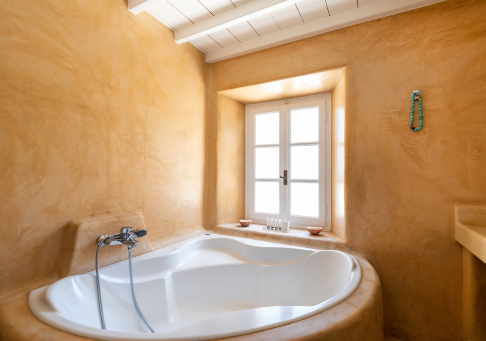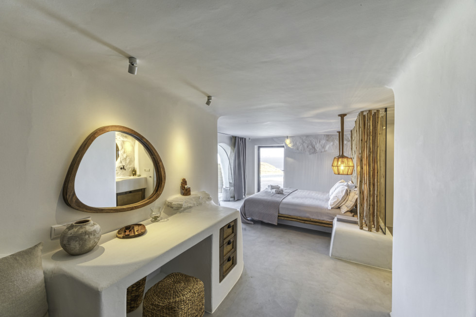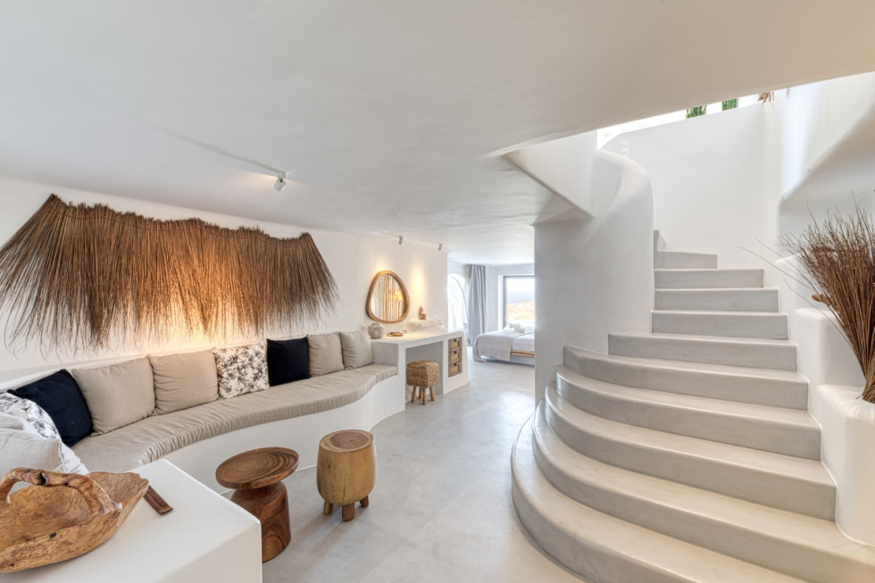 Sunbathe in front of the infinity pool, enjoy the sunrise and the views of Kalo Livadi beach.
