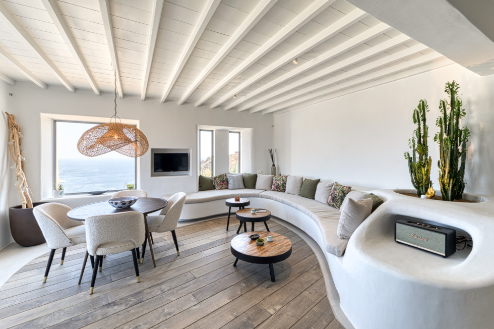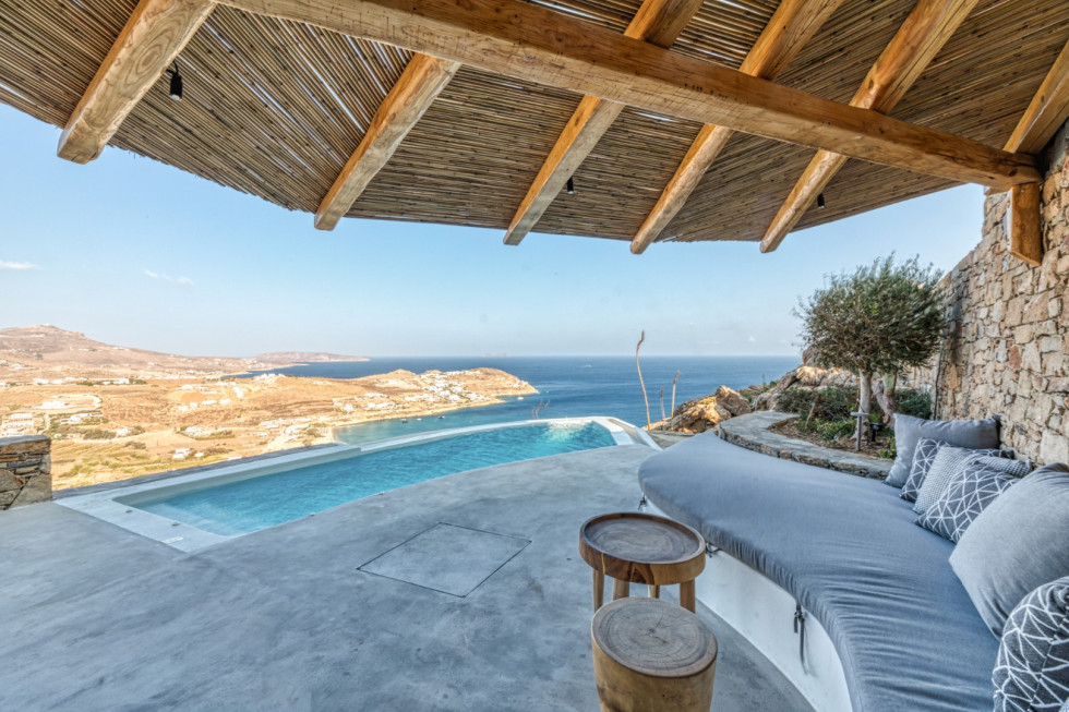 Villa Aqua White will become your private summer heaven, offering uninterrupted views of the Aegean Sea, a large outdoor area with an infinity private pool, multiple seating, lounge areas and a covered dining table for family or friends gathering.