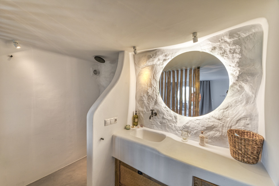 The upper level of the house there is a spacious open-plan living room that overlooks the majestic views, one double bedroom with an en-suite bathroom and a covered outdoor space with a big dinning area.