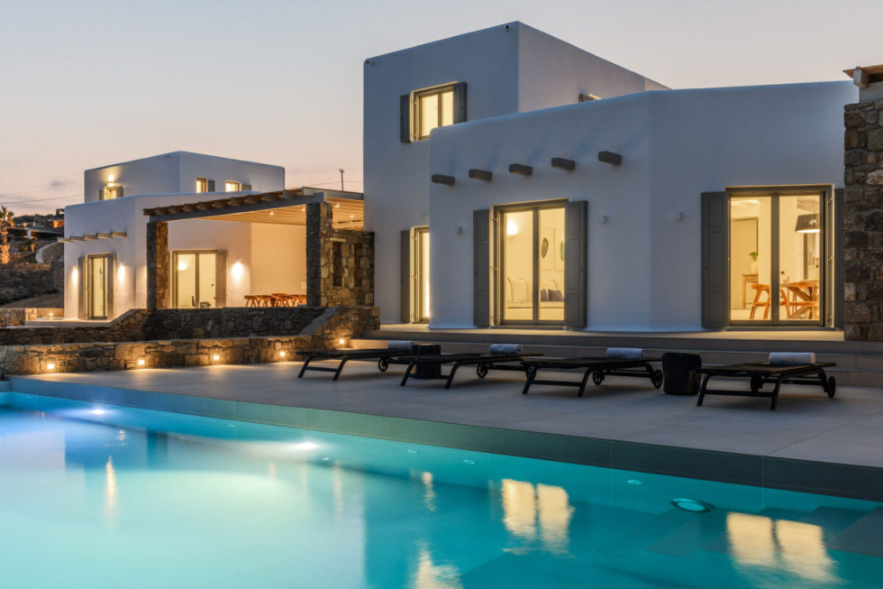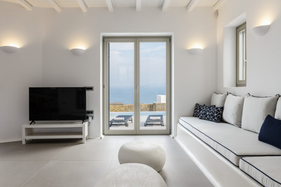 Brand new Cycladic villa, enhanced by modern comforts cleverly blended with minimal chic and contemporary interior designs.