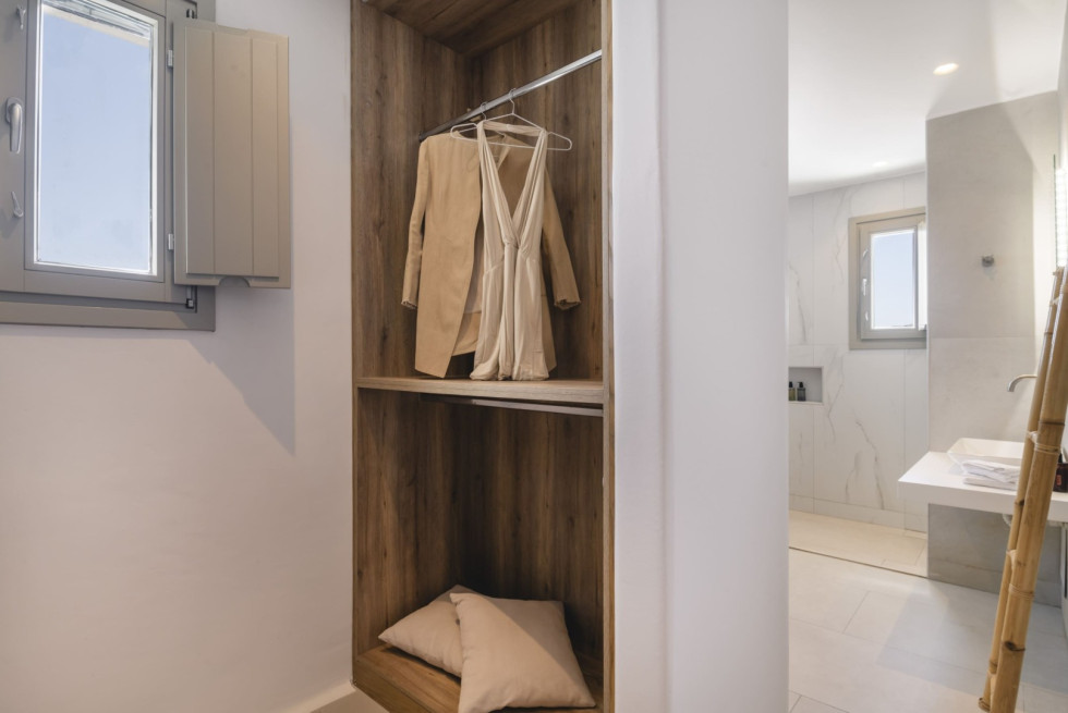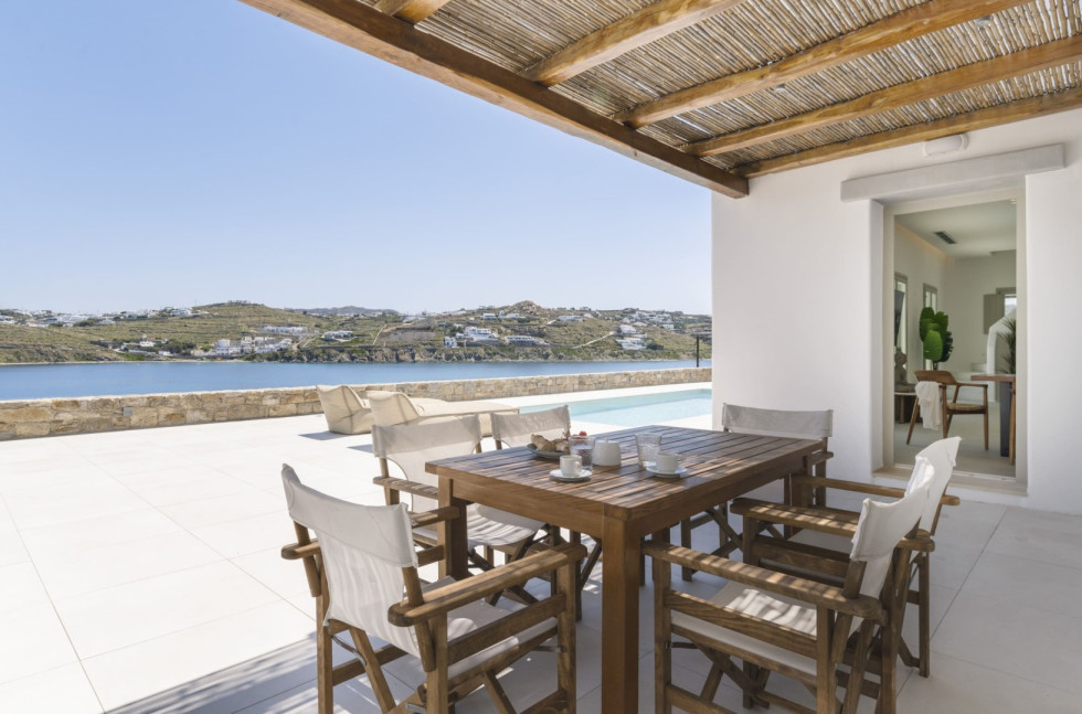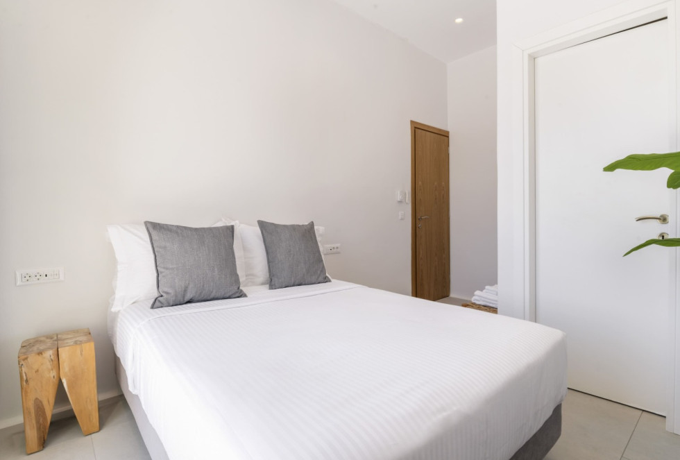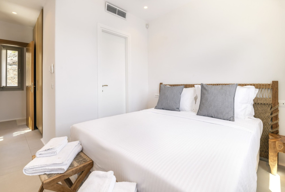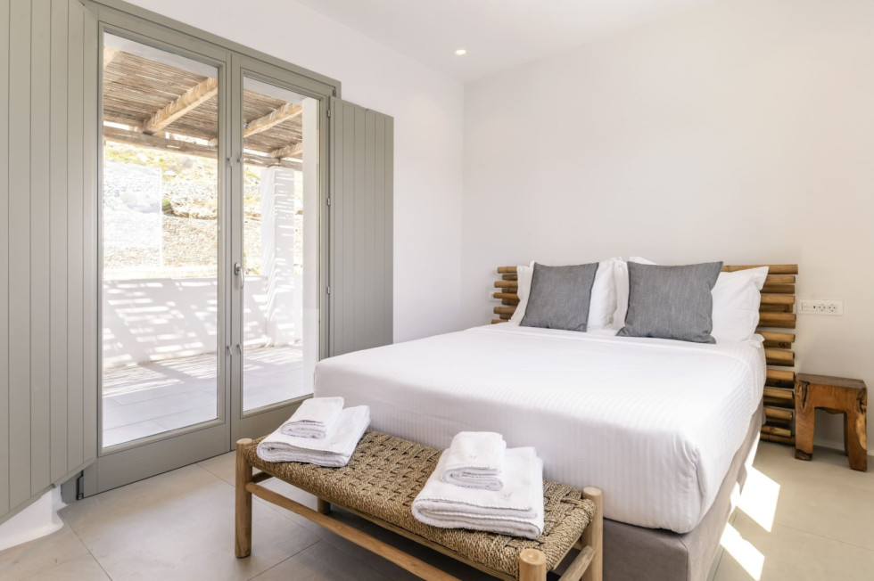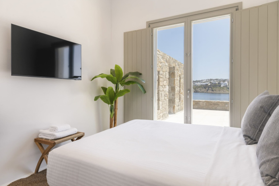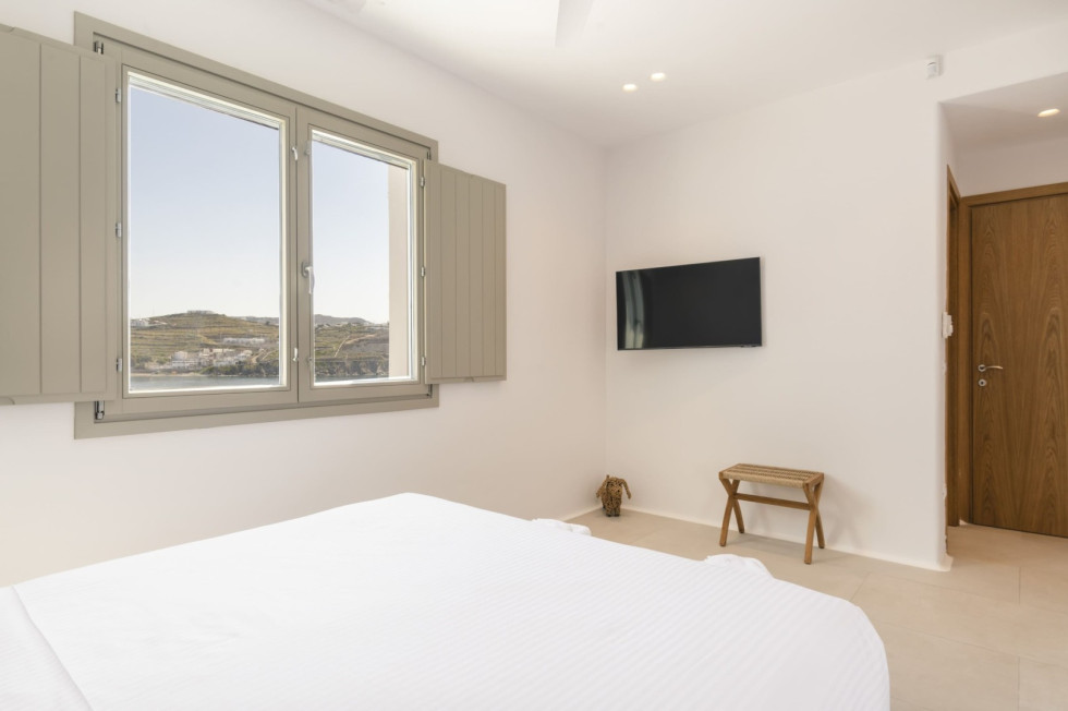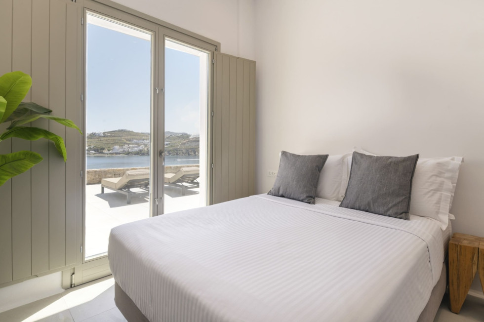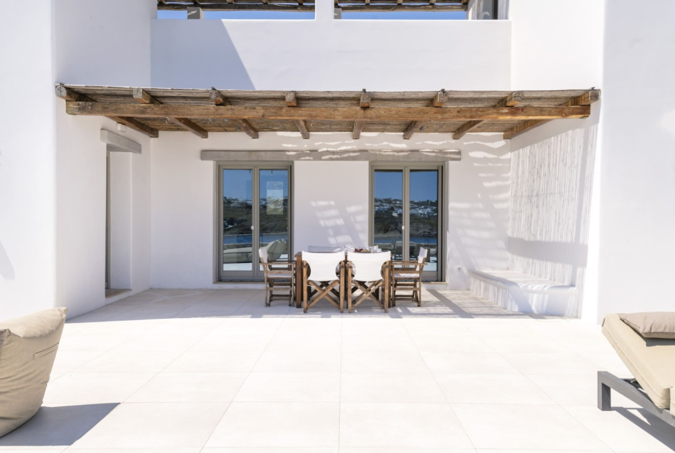 Conveniently located, Korfos Beach and the lively village of Ornos—with its shops, cafés, and restaurants—are just a 15-minute walk away, while Mykonos Town and its famous nightlife can be reached within a 6-minute drive.