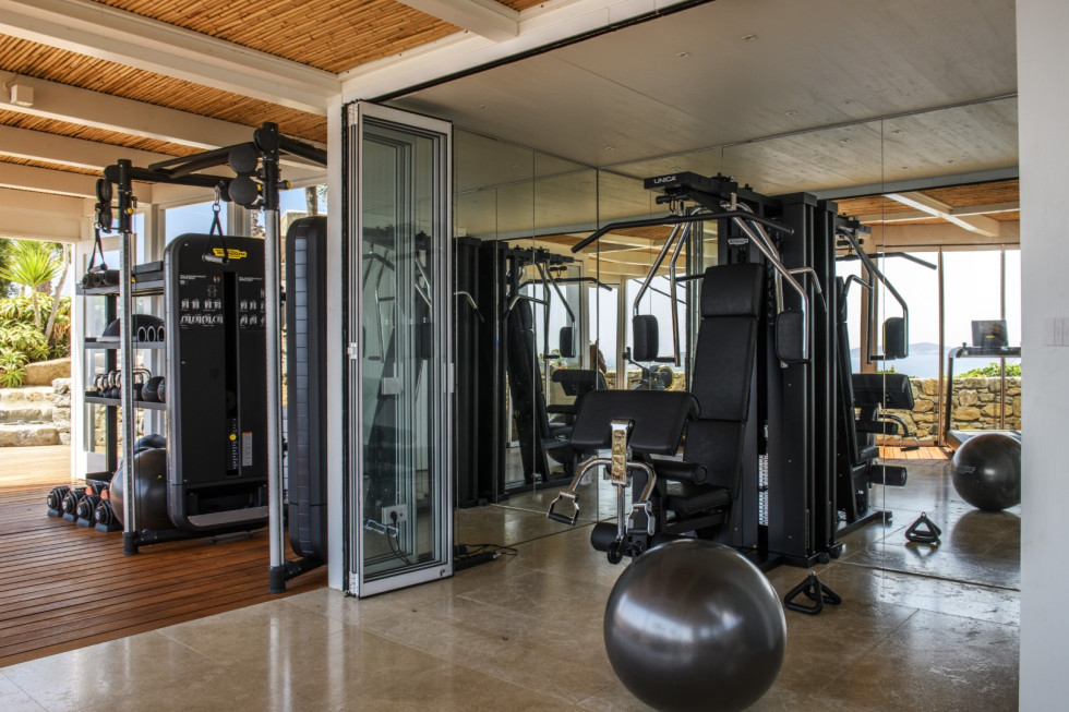 The villa offers a refreshing shaded outdoor gym area with fitness equipment, a wooden Sauna room with mesmerizing Sea Views, a lovely promenade with Tropical Trees and amazing views of the Mediterranean and a