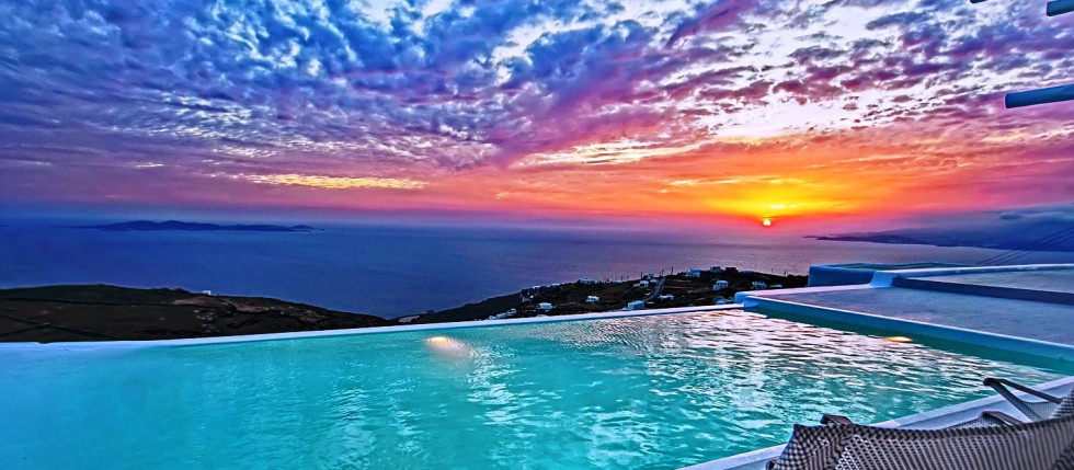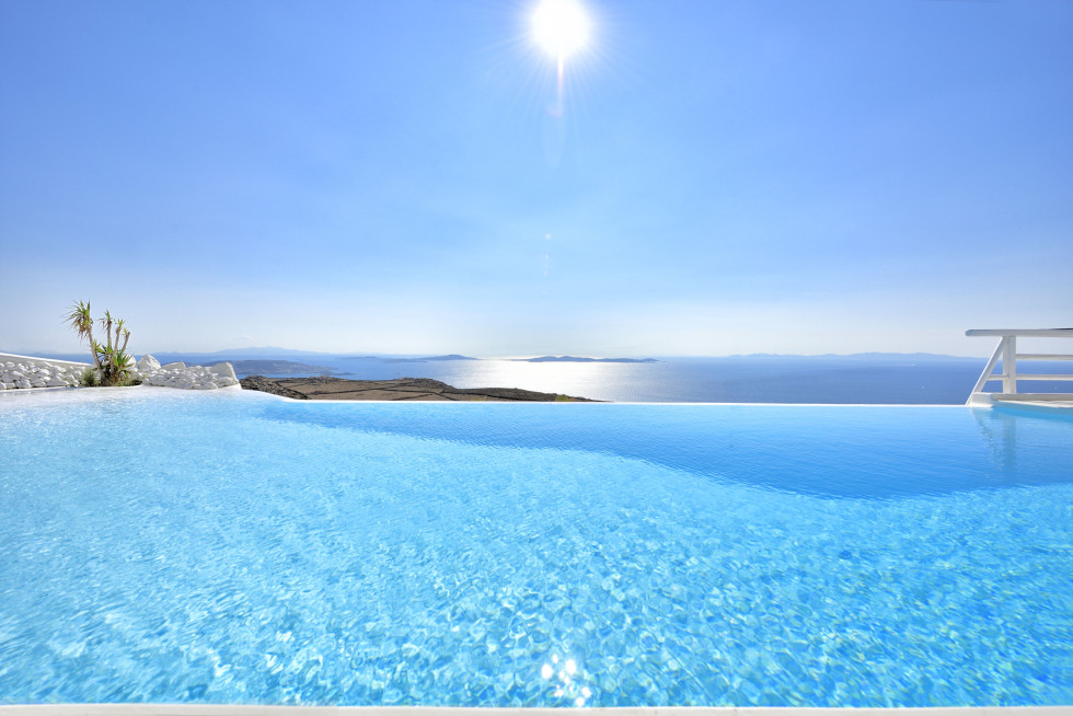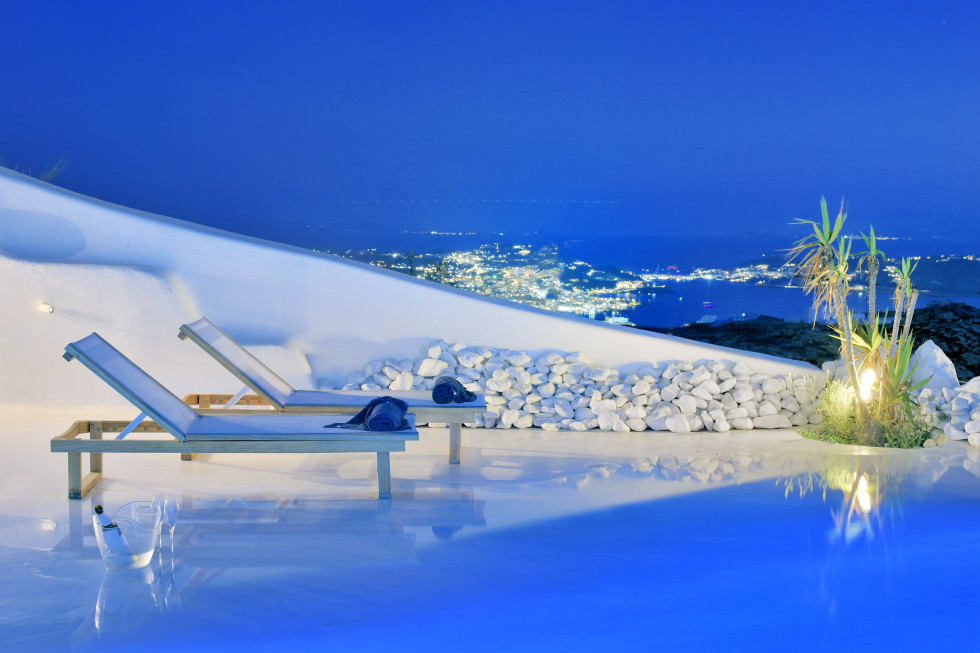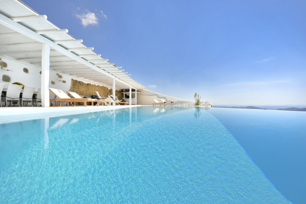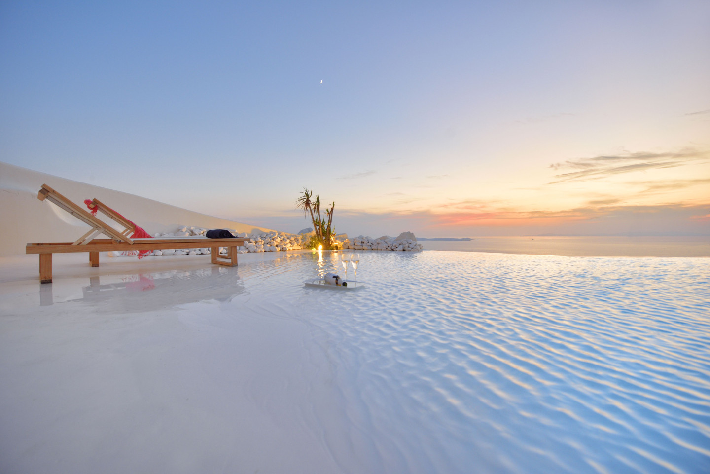 Sit back on one of the lounges and enjoy a break from reality by getting lost in the view of your private infinity pool’s edges blending in perfectly with the Aegean Sea below.