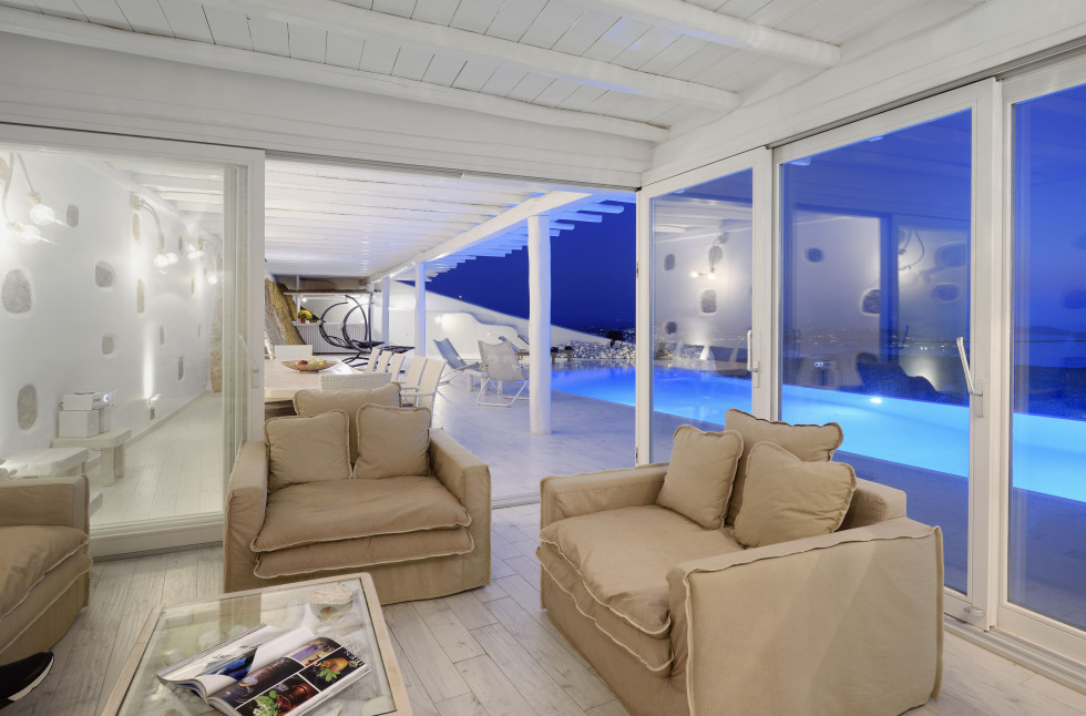 Mykonos is one of the most enticing destinations on earth, everything about this property breathes cool and calm, from its sleek air-conditioned interior to its beautiful panoramic view of the hills and beaches below.