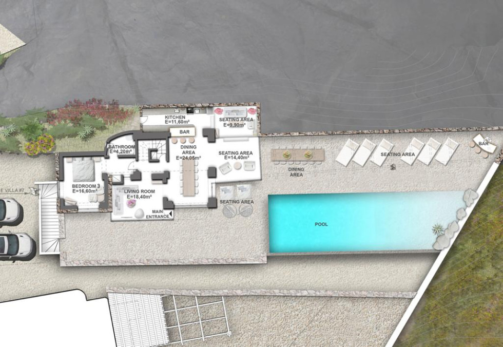 Fanaria is a private property of 350sqm, that finds space atop the hills in the northwestern part of Mykonos, a position allowing for breathtaking views over the islands of Delos, Rhenia, Naxos, Paros and Tinos as well as the colorful sunsets and Aegean waters.