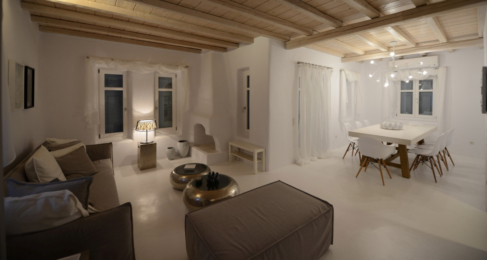 Located in Ornos overlooking the sea, villa Gazelia occupying 192sqm built on two levels. Comprising living room, dining room, kitchen, 3 bedrooms ana 1 wc. The way is developed through the bold rupture od old and new, manages to create a sence of communication between the past and the future.