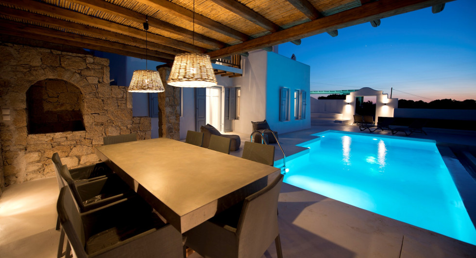 The exterior setting of the villa is shaped in different levels creating more spaces, with both shaded living and dining rooms creating with pergolas, a perfect relaxation enviroment.