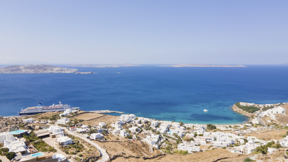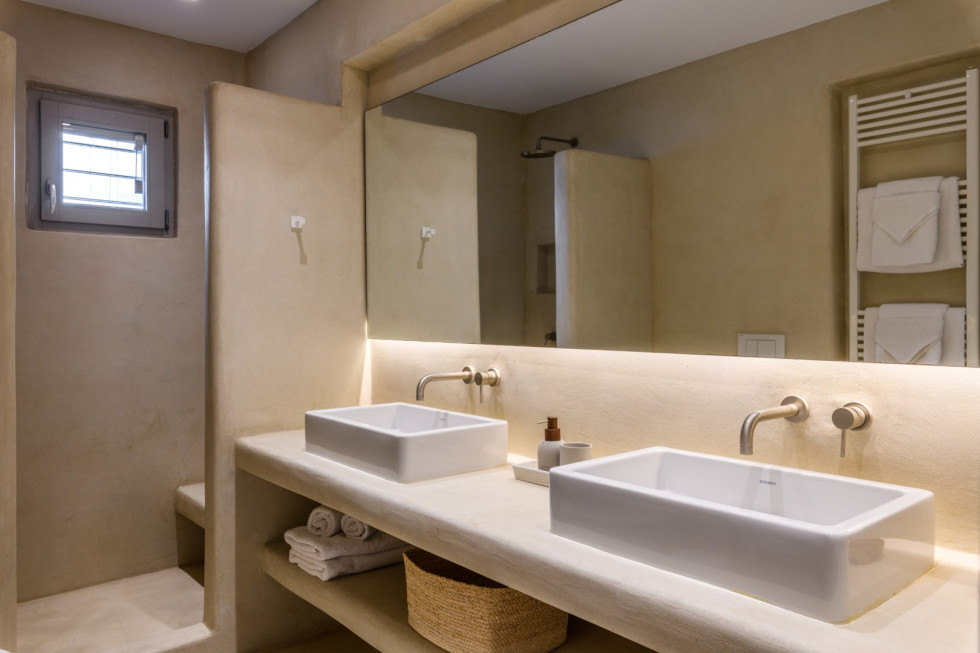 A wonderful serenity spreads in the unique and authentic style of Azure Serenity, featuring idyllic views of the Aegean Sea & Mykonos' Chora (town)! Protected from the northern summer winds, you can comfortably enjoy the outdoor living area.