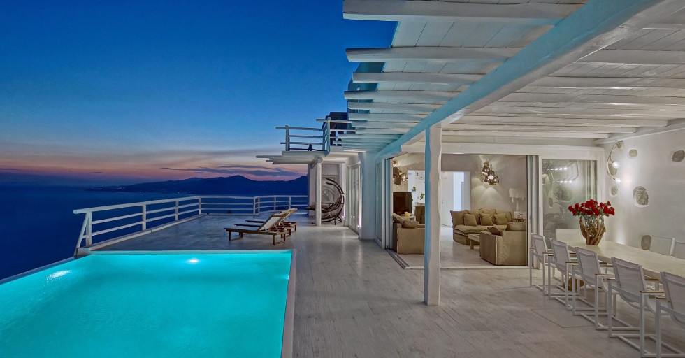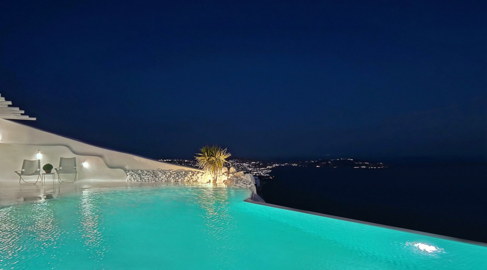Fabulous is a stunning private residence perched atop the hills of Mykonos, offering unrivaled views of the Aegean Sea and neighboring islands including Delos, Rhenia, Naxos, Paros, and Tinos. The villa’s prime location promises not only breathtaking panoramic views but also some of the most spectacular sunsets in the Mediterranean. A truly luxurious retreat, the property is designed for comfort and privacy, featuring top-tier amenities and a resort-like atmosphere.