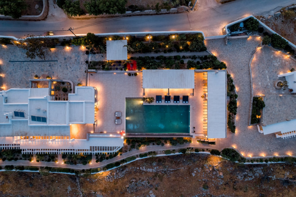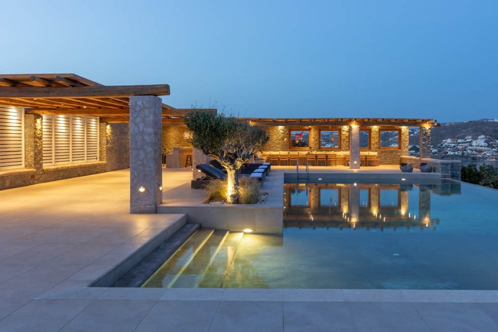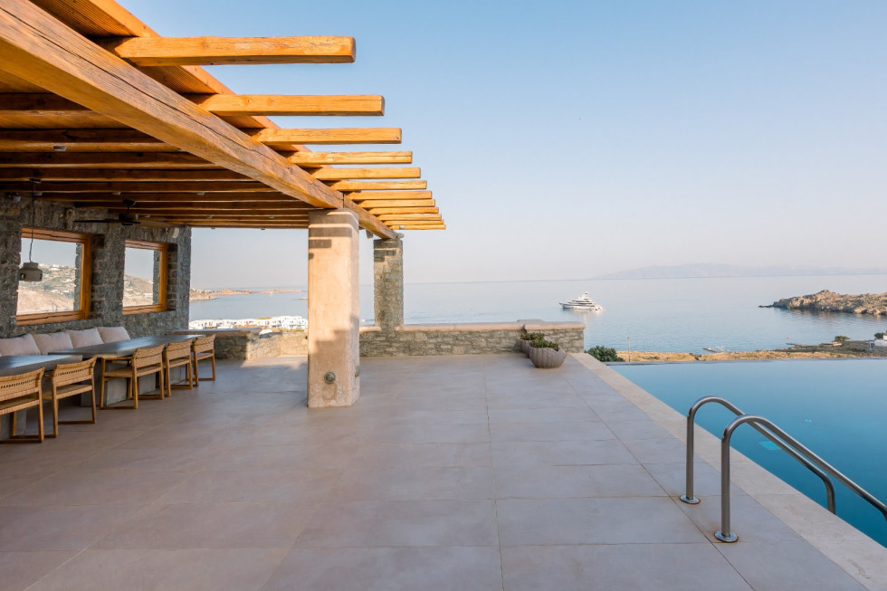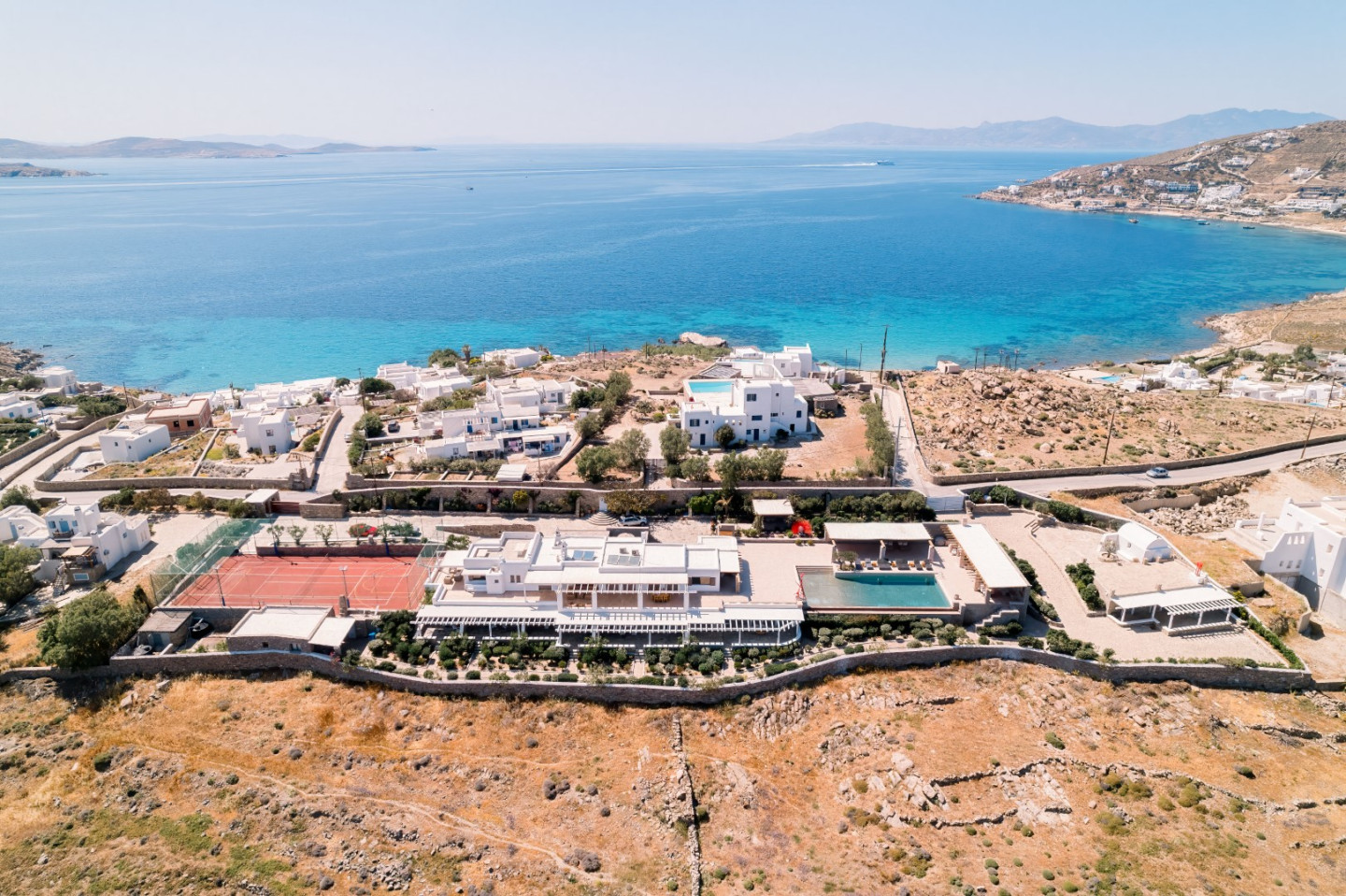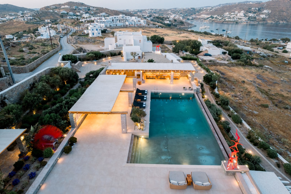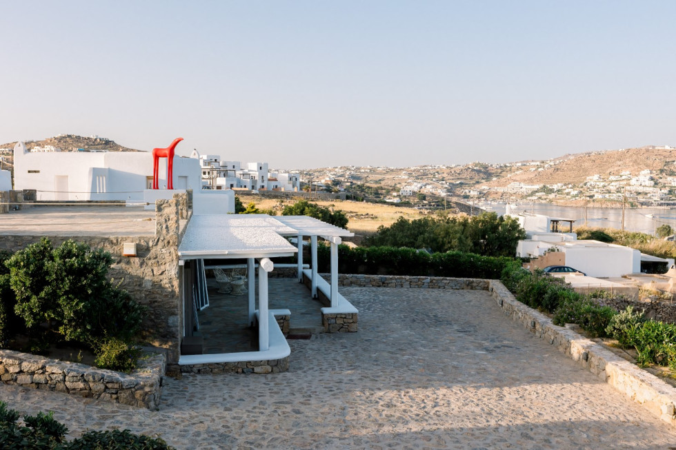 Located just five minutes from the cosmopolitan beaches of Ornos and Saint John and ten minutes from Mykonos Town and the airport, the Cycladic Horizon Retreat offers an unparalleled balance between secluded luxury and easy access to the island’s renowned nightlife and cultural scene.