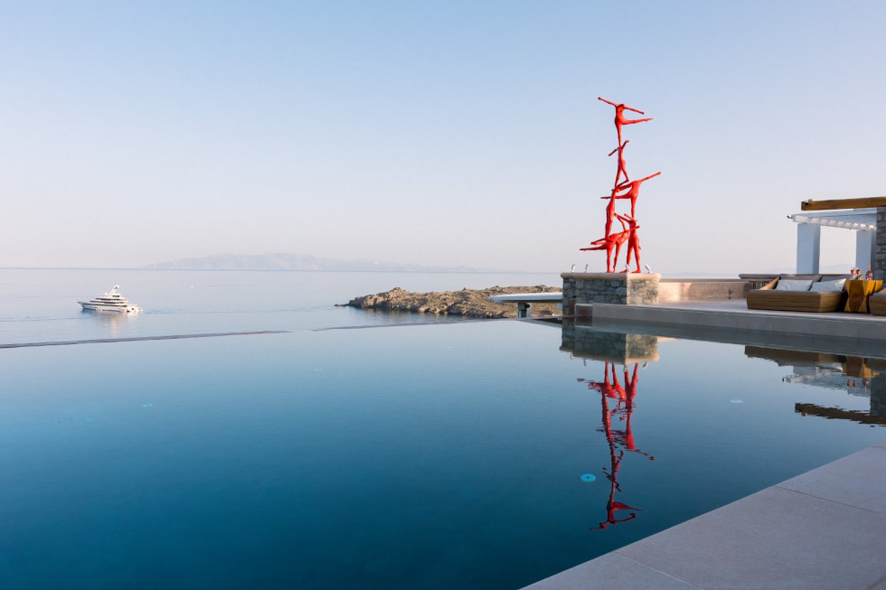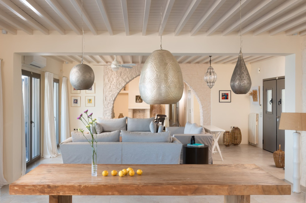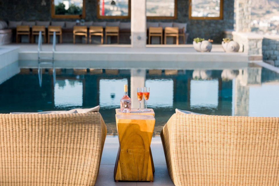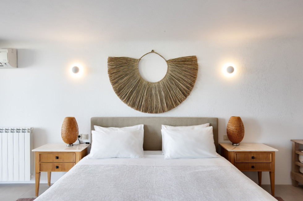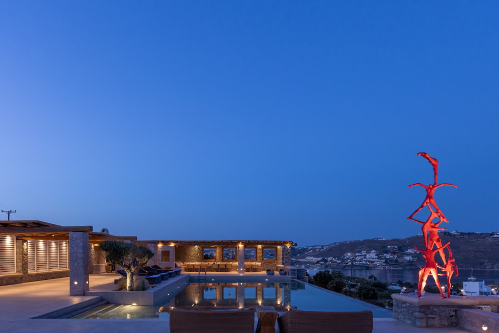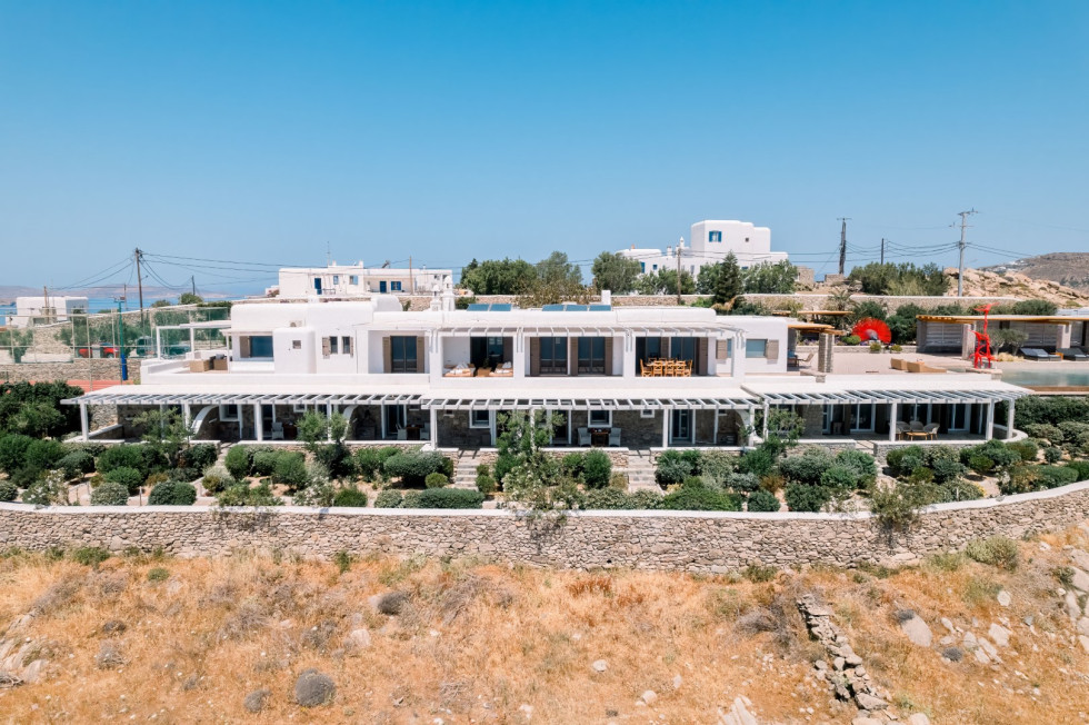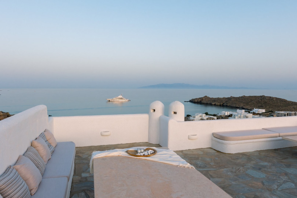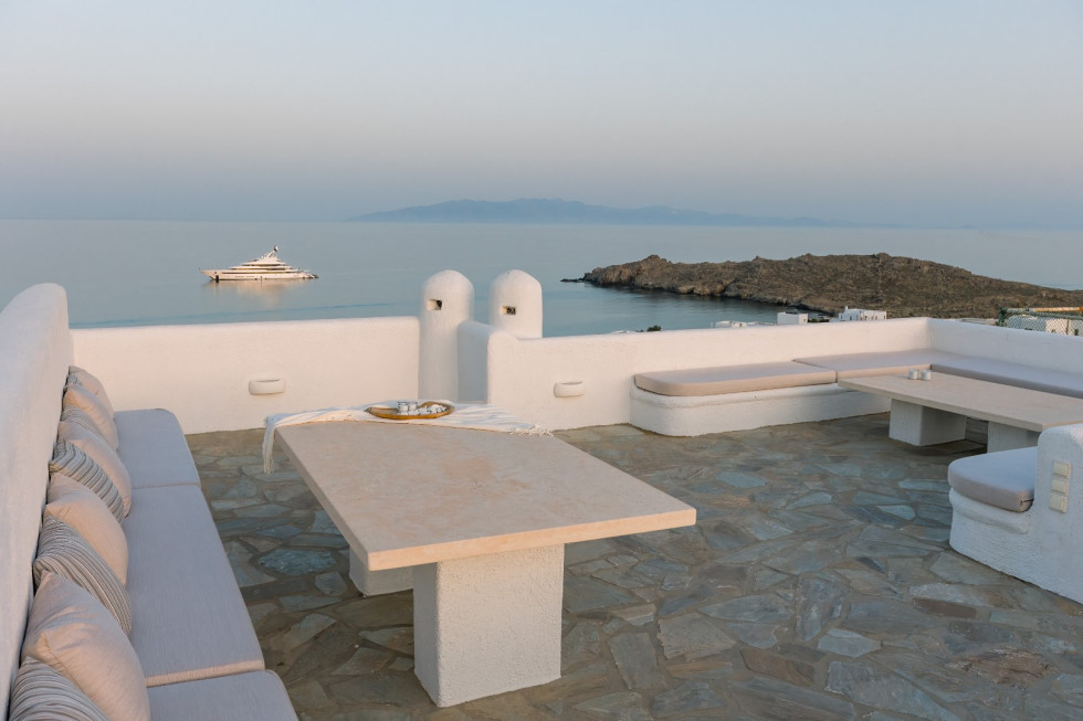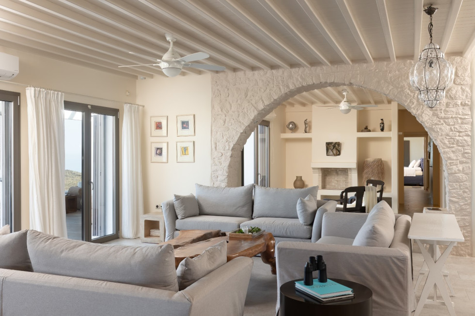 Built in harmony with Cycladic architecture, the villa is adorned with designer furnishings, curated artwork, and natural materials that reflect the essence of Mykonos.
