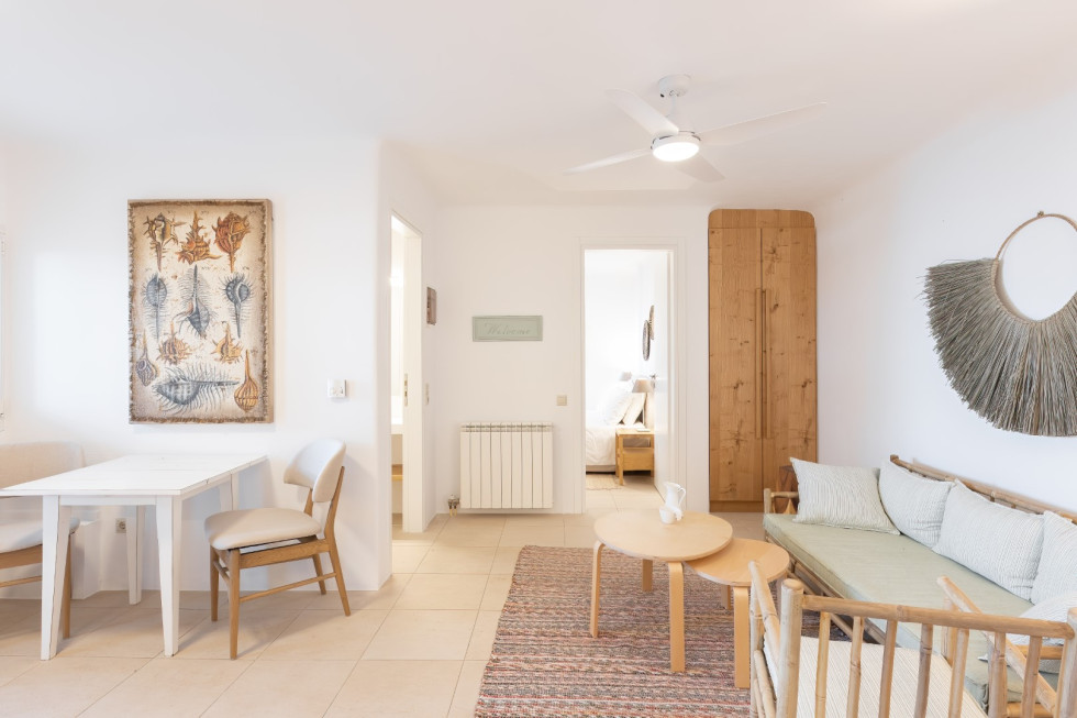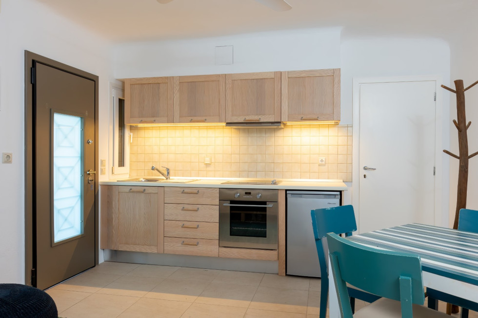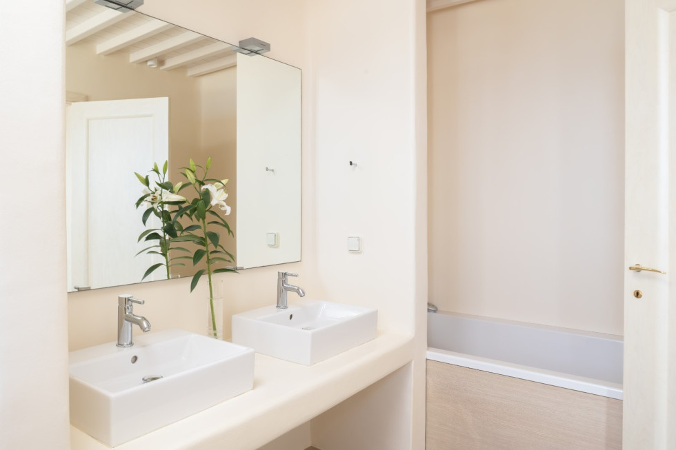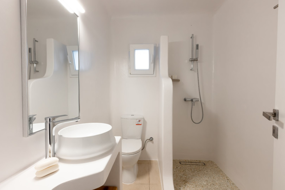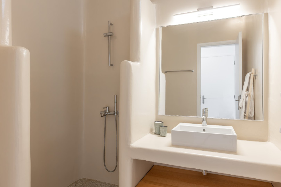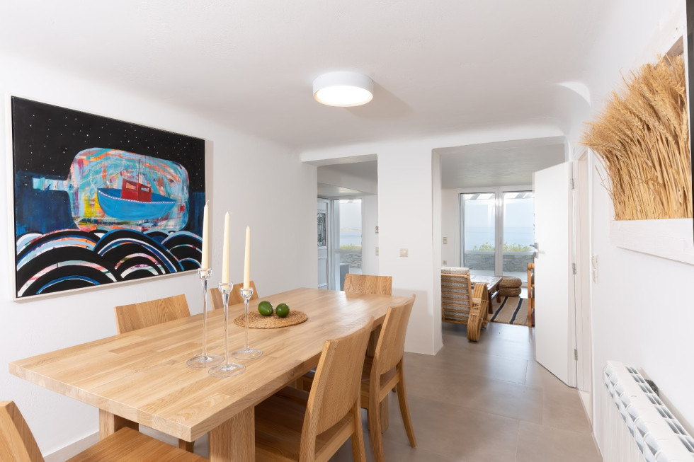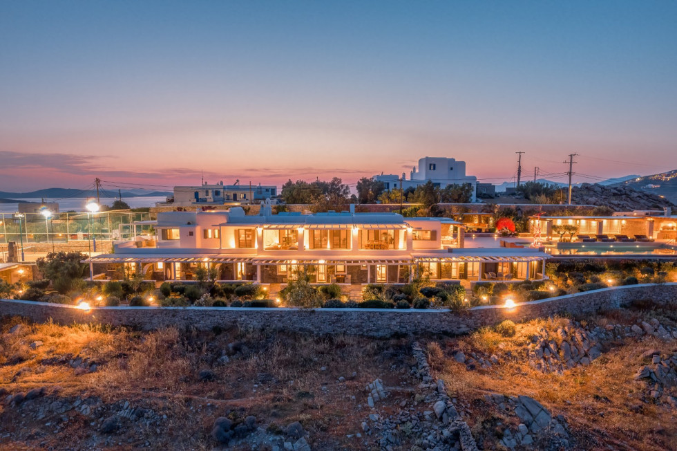 Just a short walk away, the serene Glyfadi Beach invites guests to unwind by the water, while the world-renowned beaches of Ornos, Saint John, and Psarrou are within close proximity, offering the perfect blend of relaxation and vibrant island life.