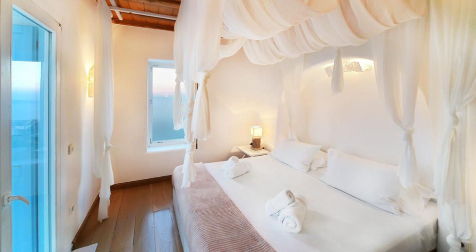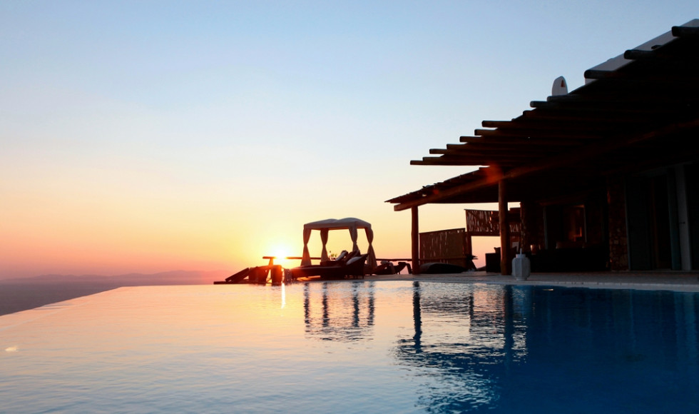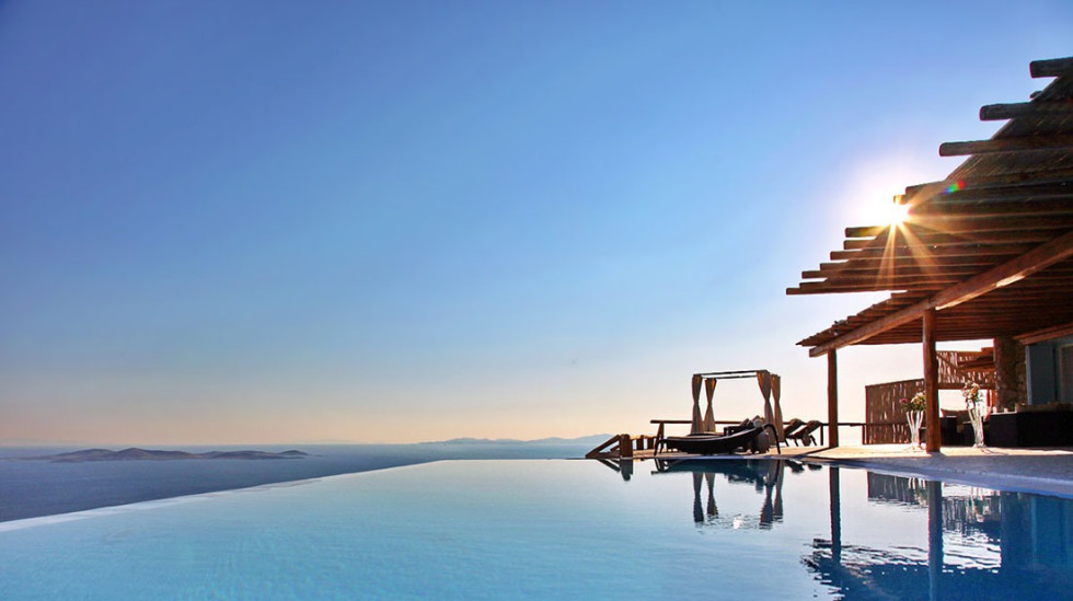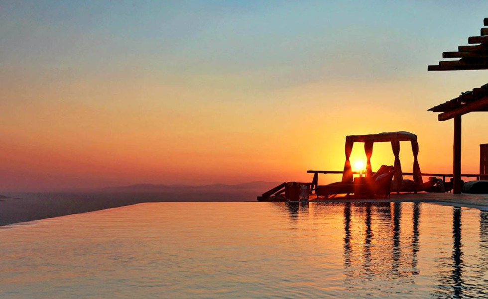 Onlyone is a private property that finds space atop the hills in the northwestern part of Mykonos, a position allowing for breathtaking views over the islands of Delos, Rhenia, Naxos, Paros and Tinos as well as the colorful sunsets and Aegean waters.