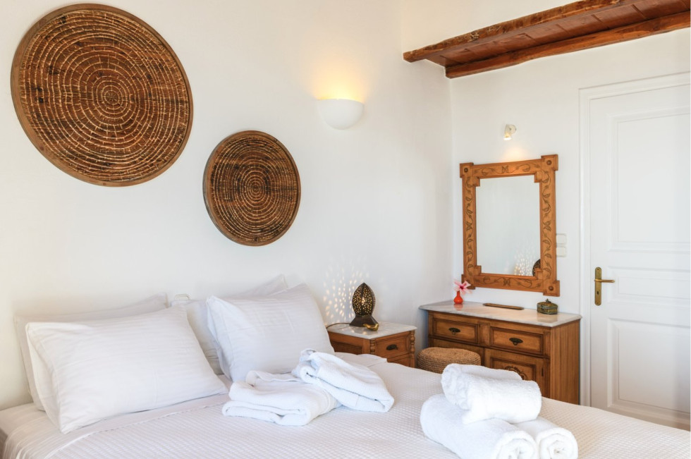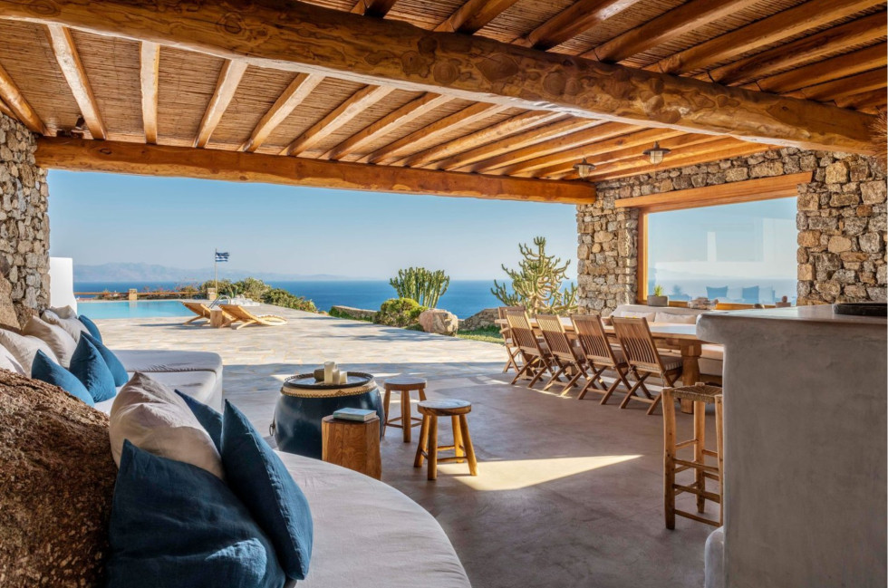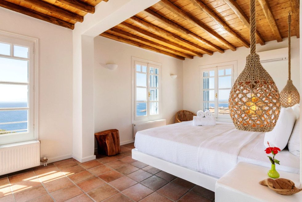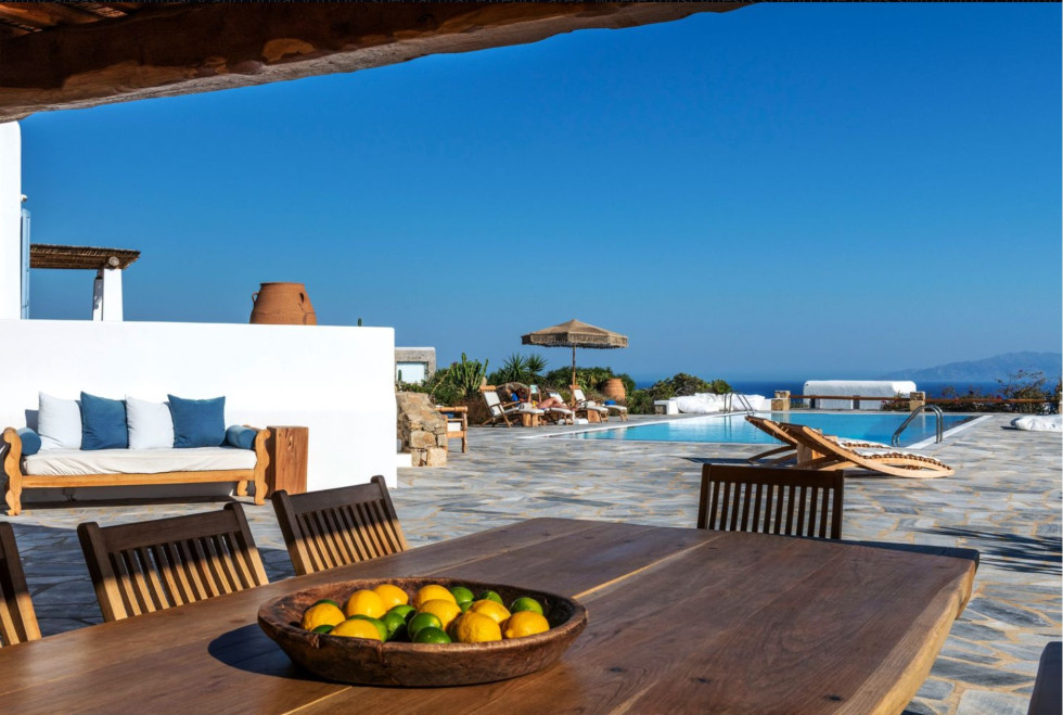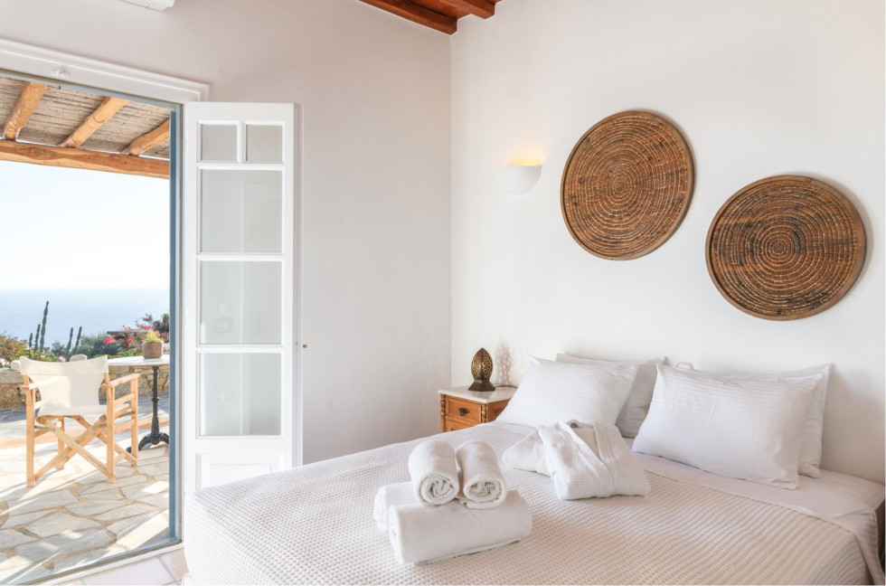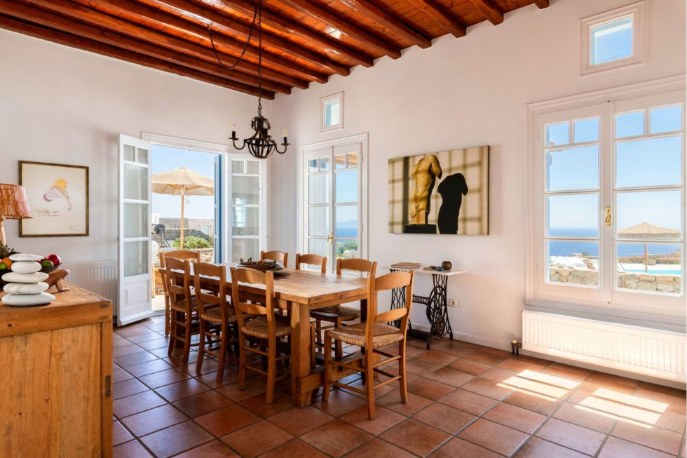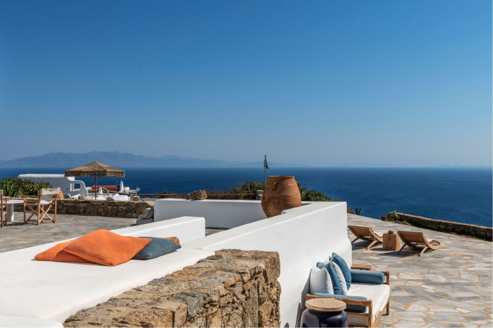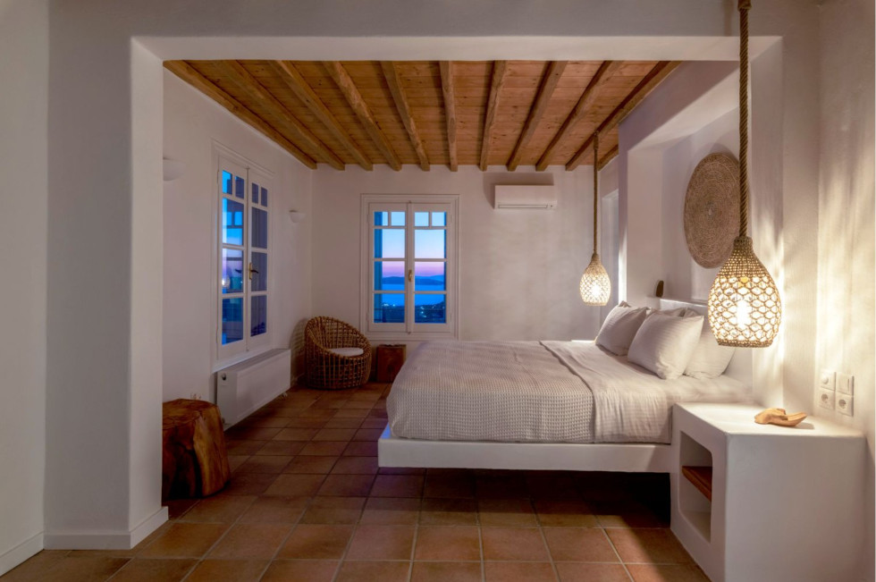 The villa offers stunning views to the sea, the surrounding islands and rather uniquely, to both, the sunrise and the majestic sunset.