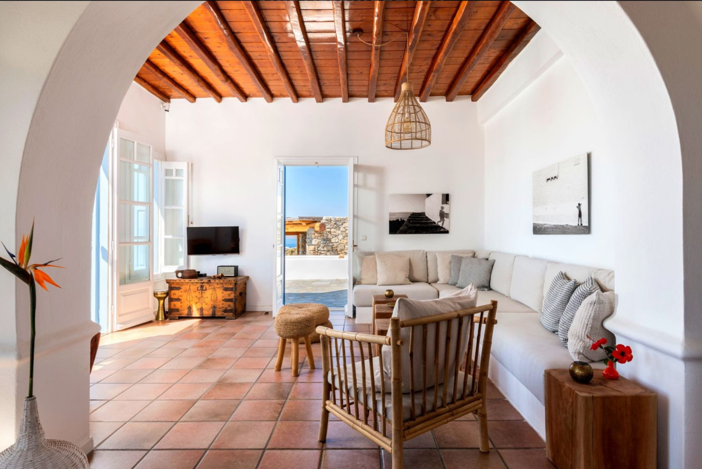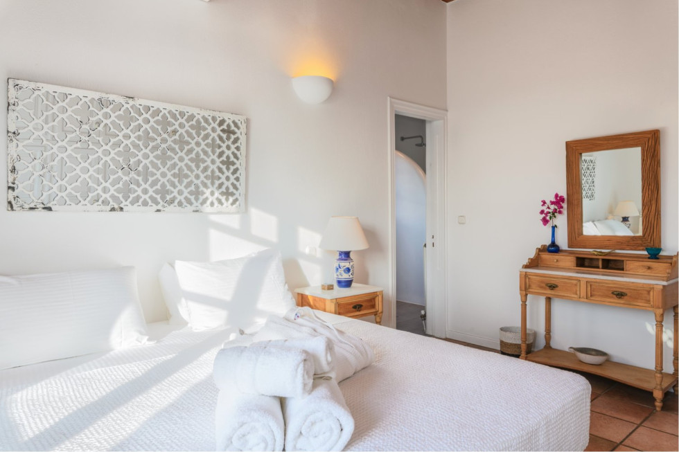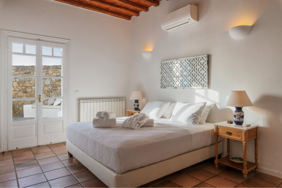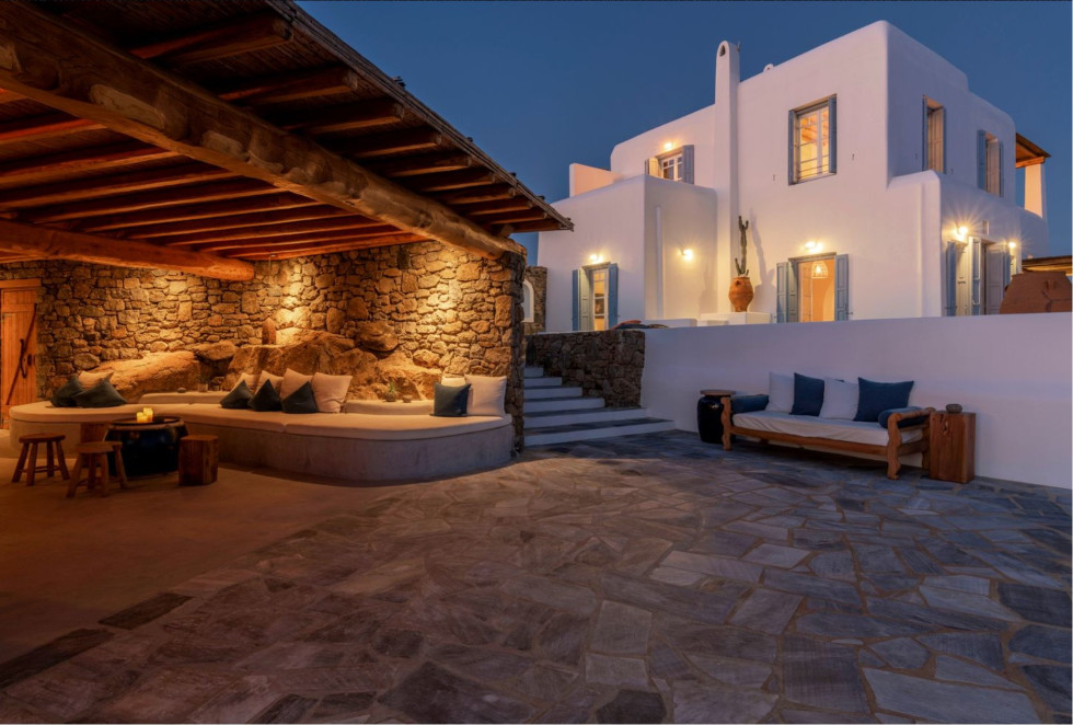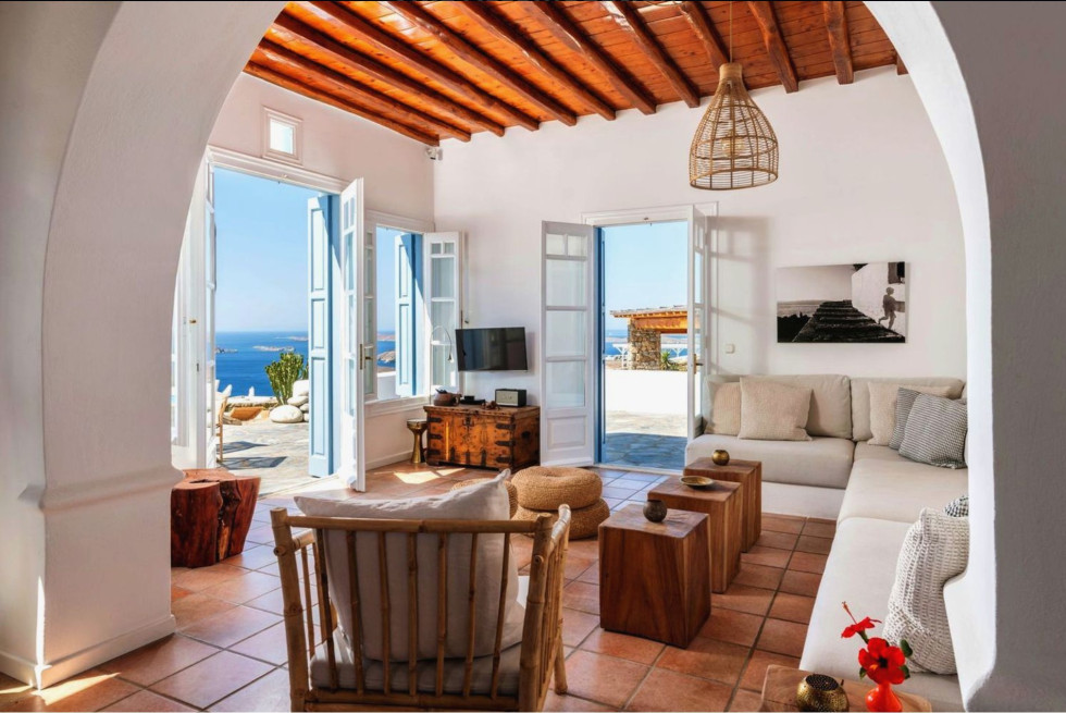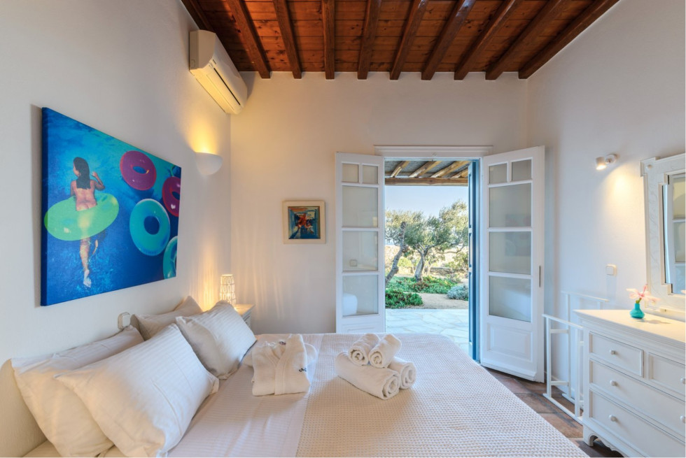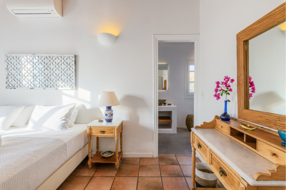 The villa offers stunning views to the sea, the surrounding islands and rather uniquely, to both, the sunrise and the majestic sunset.