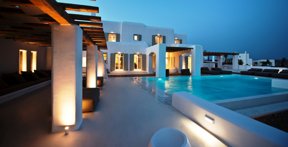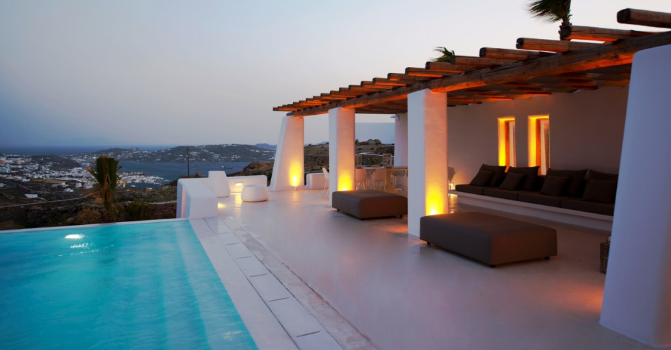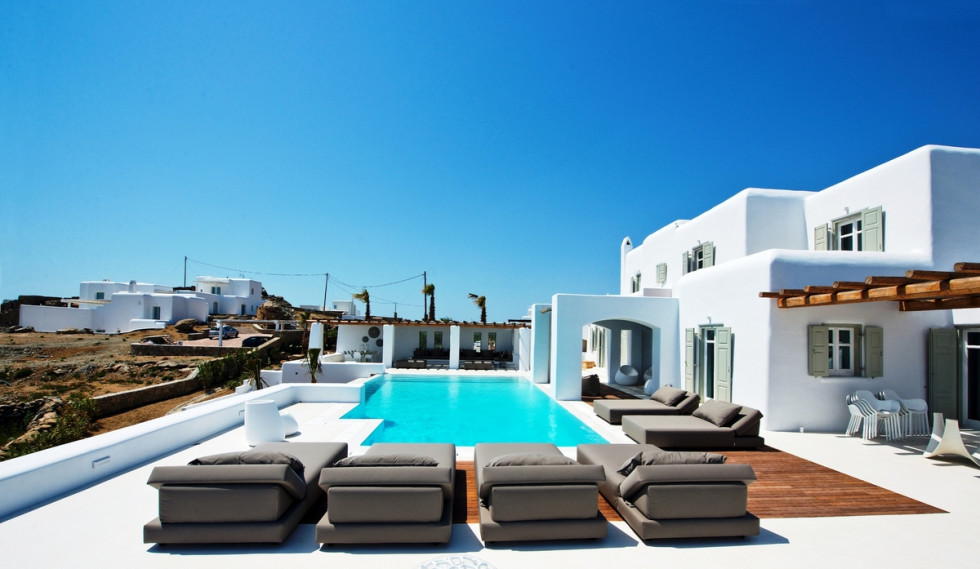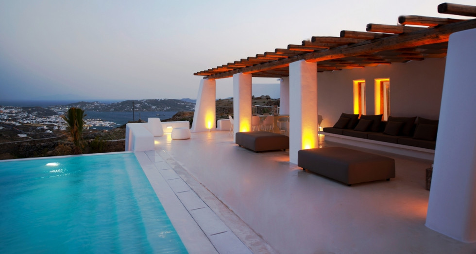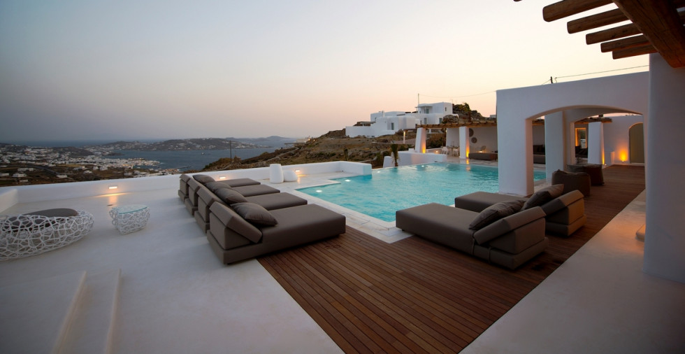 Spacious outdoor surrounding of Villa Zinovia is occupied by its own private infinity edge swimming pool.
