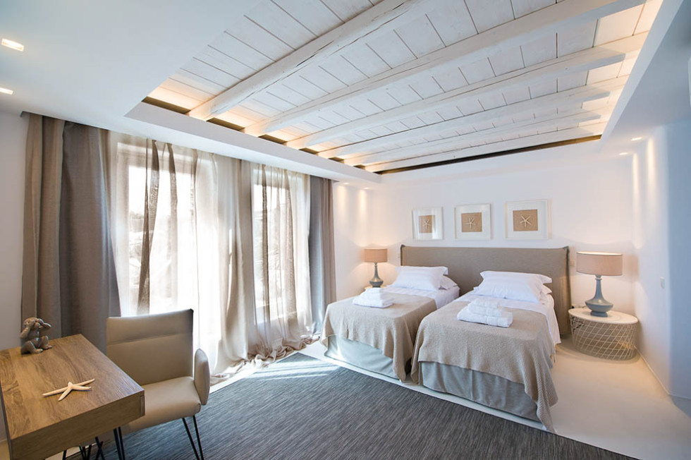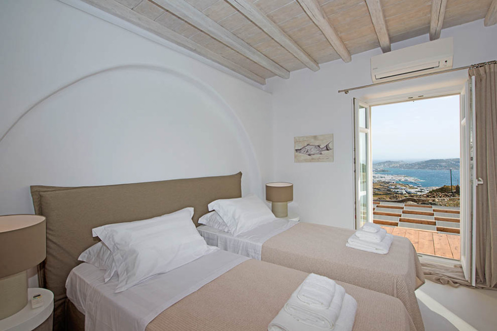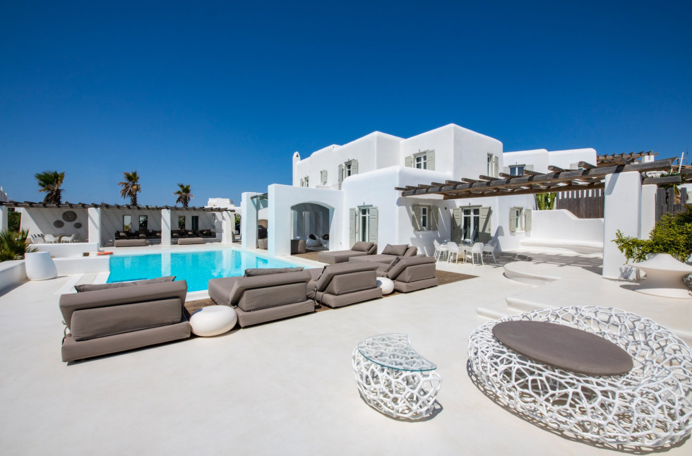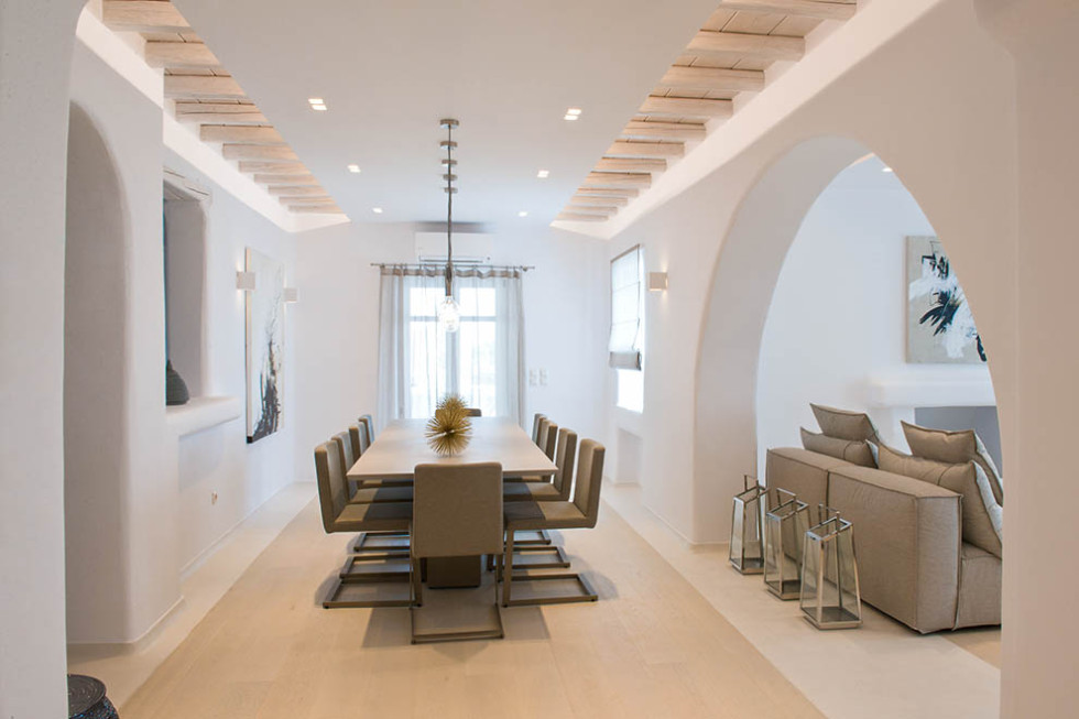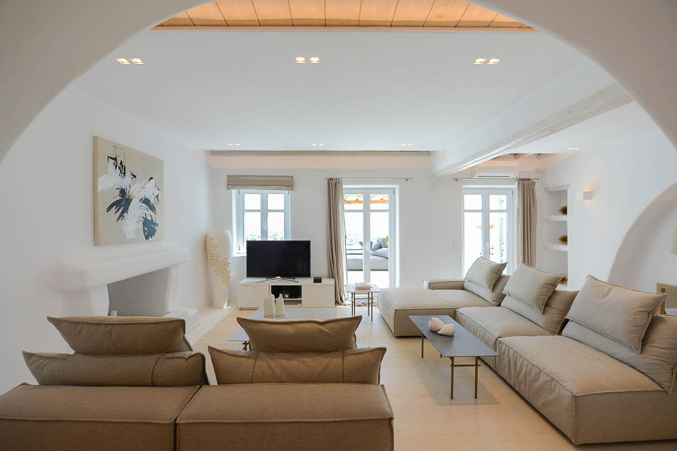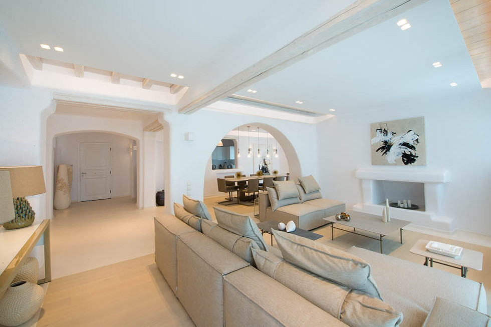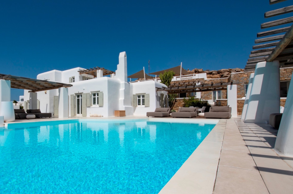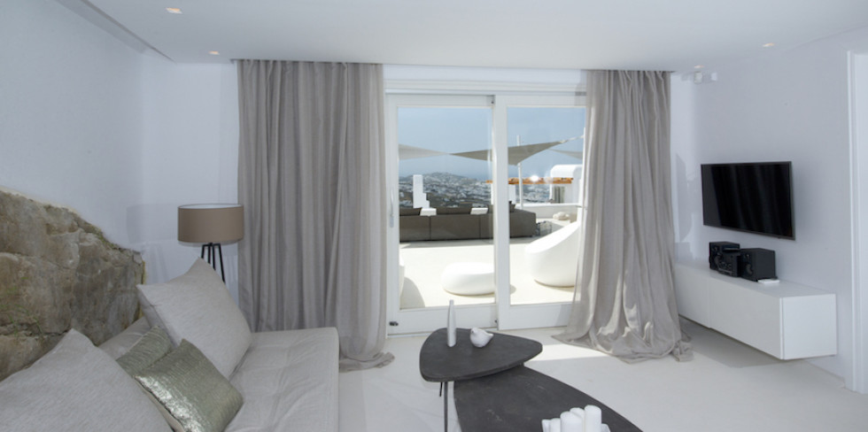 The exclusive villa provides a unique panoramic view of the island and the endless turquoise of the Aegean Sea.