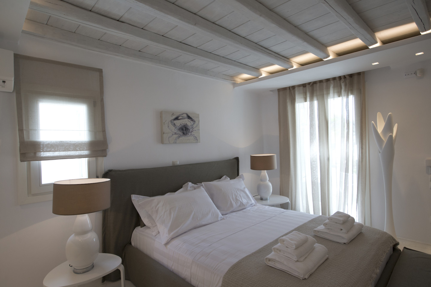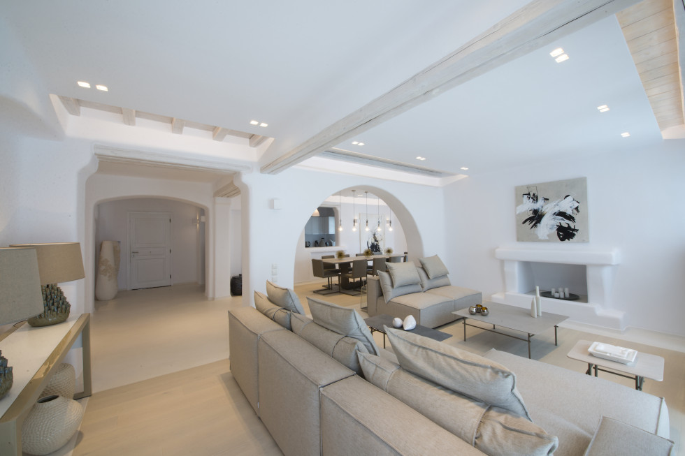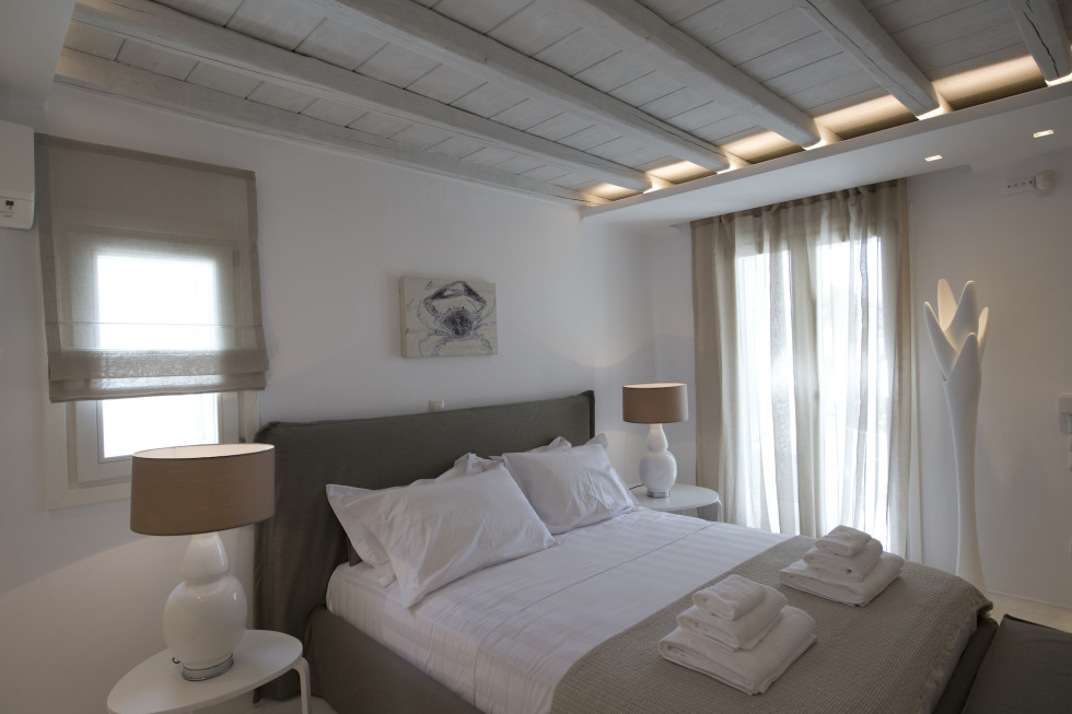 Mykonos Town is a 10 min ride, while Psarou, Ornos, St. John and Agios Stefanos beaches are within a 20 min drive or less, although spacious outdoor living areas make staying at the villa tempting, enough.