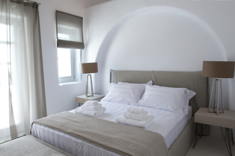 The infinity pool blends with the blue of the sea in order to capture the most amazing panoramas of the Aegean Sea and the legendary Mykonos Town.