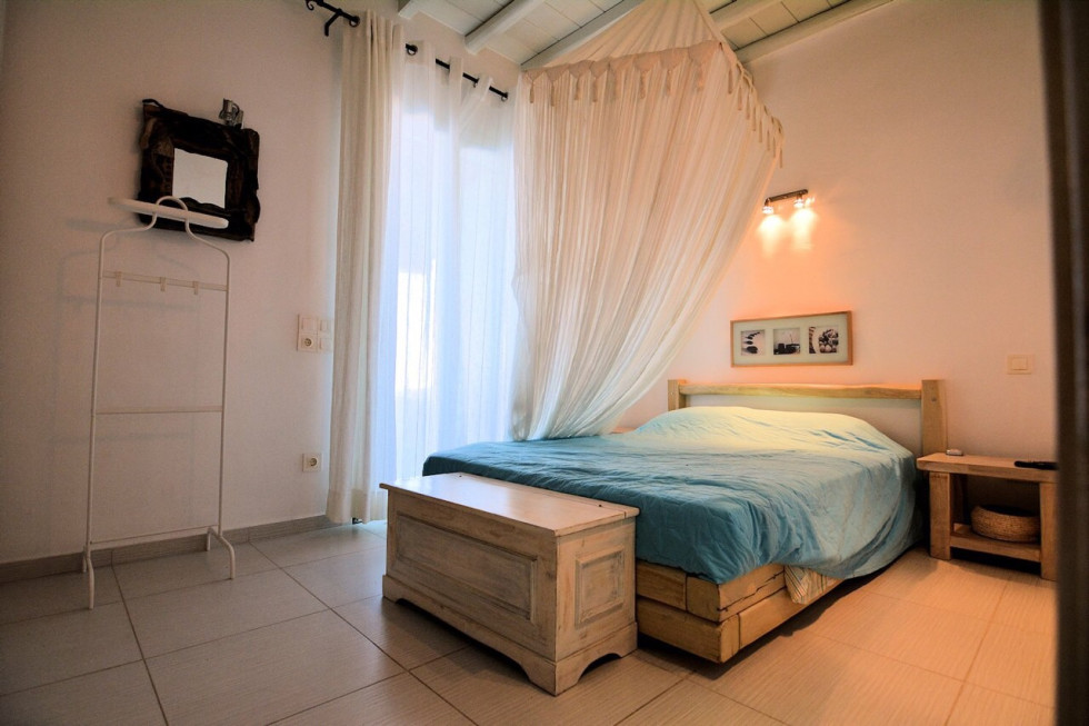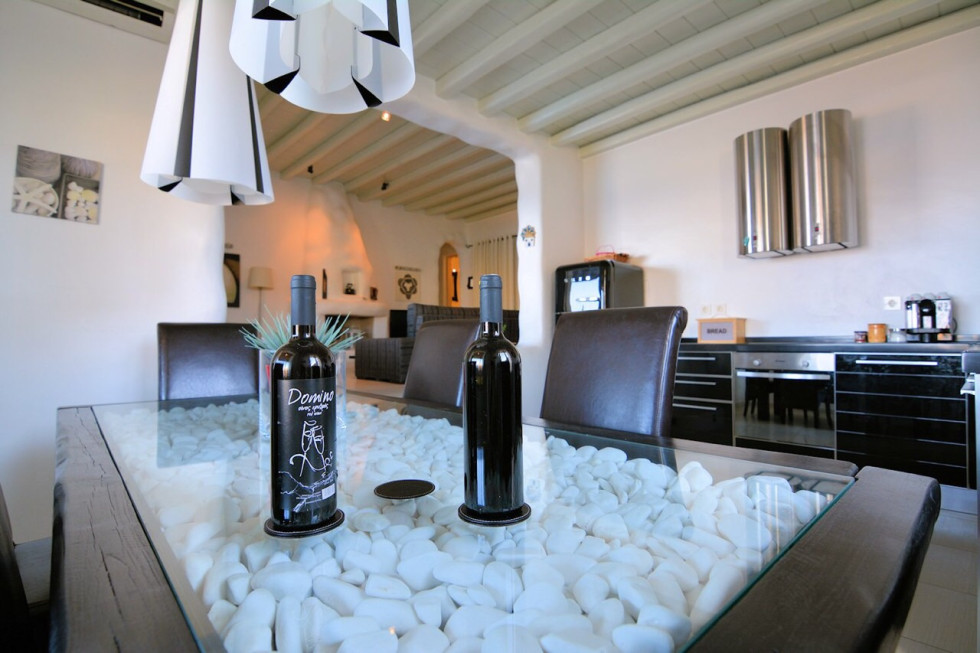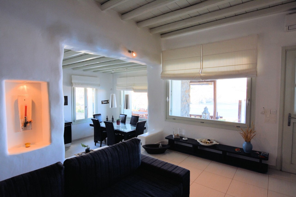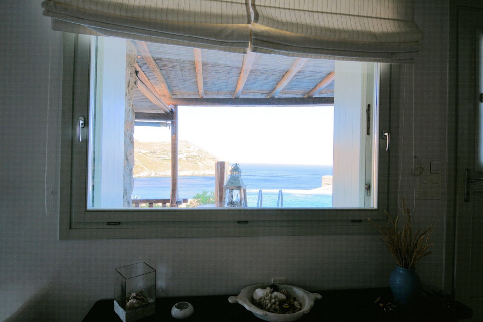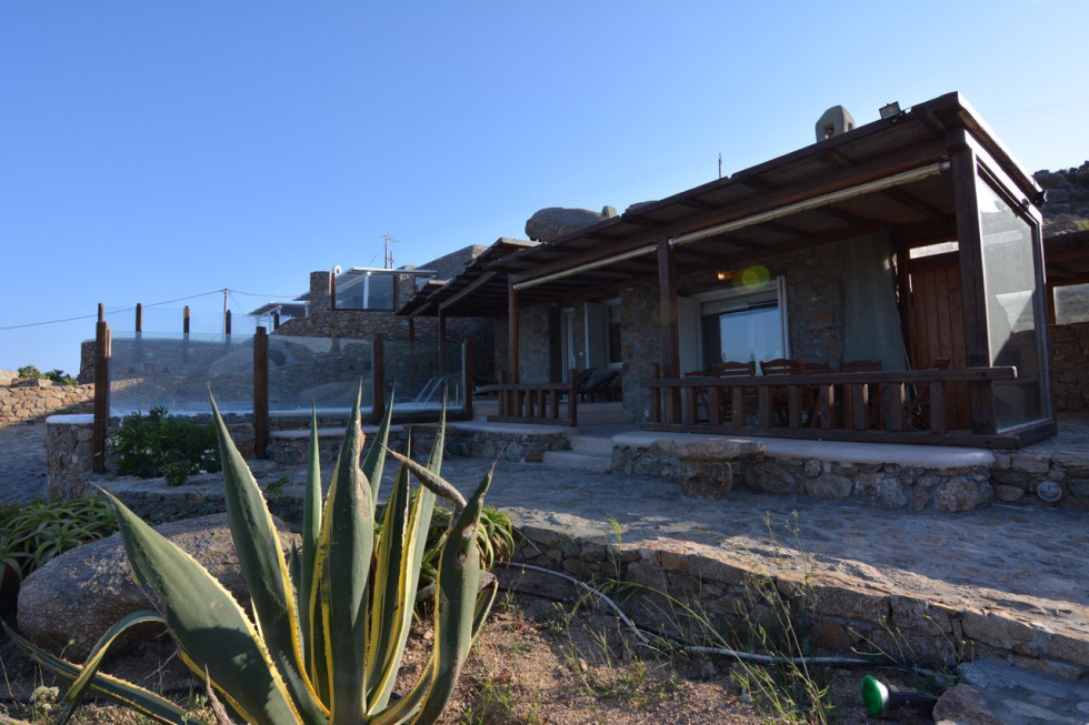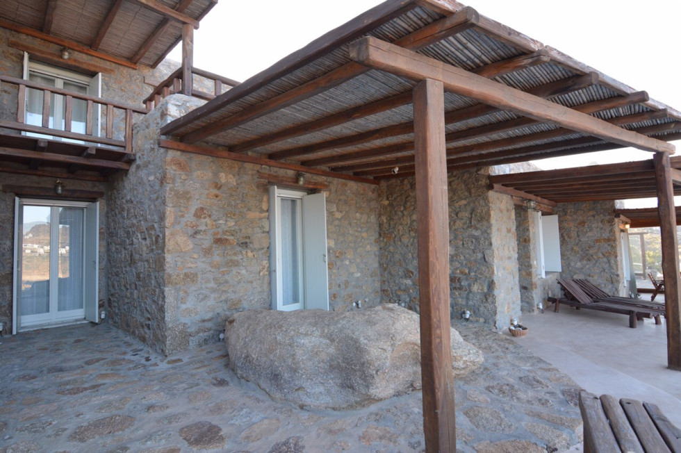 Located in the south of the island, facing Super Paradise, with an overview of the Aegean Sea and Naxos Island.Traditional cycladic architecture, large outdoors, walking dixatnce to the beach.