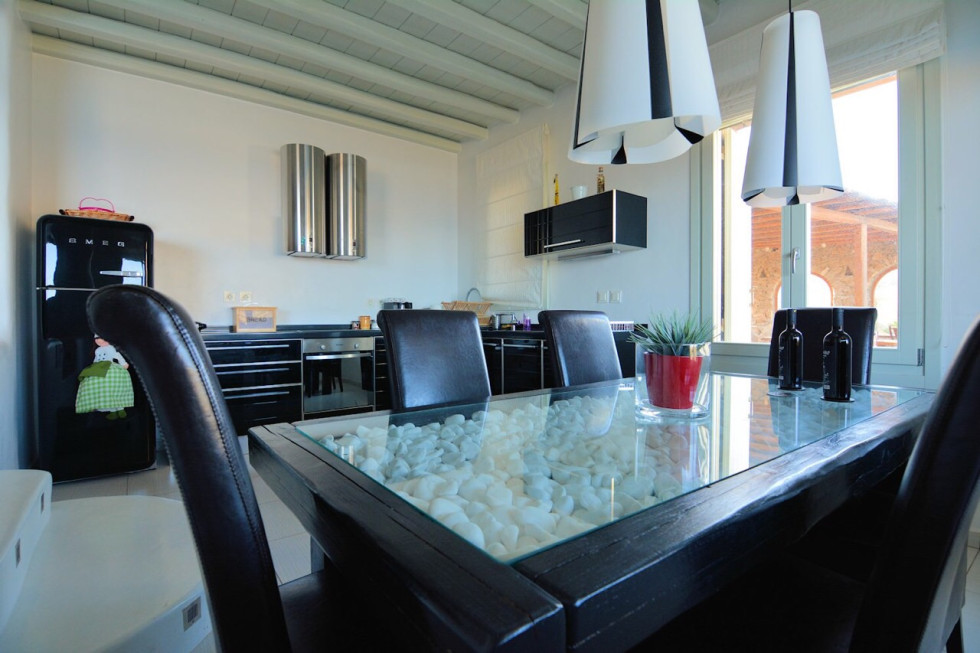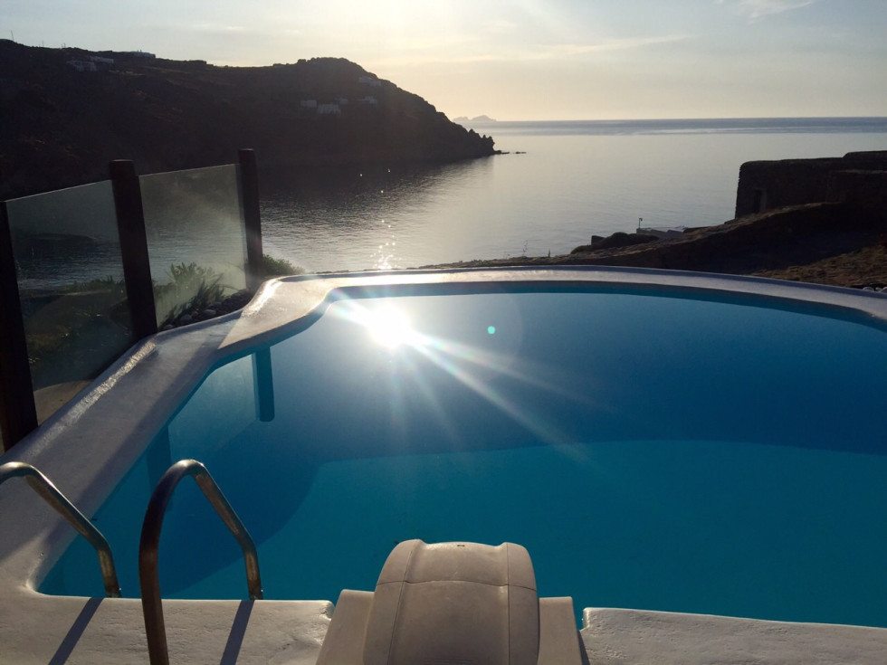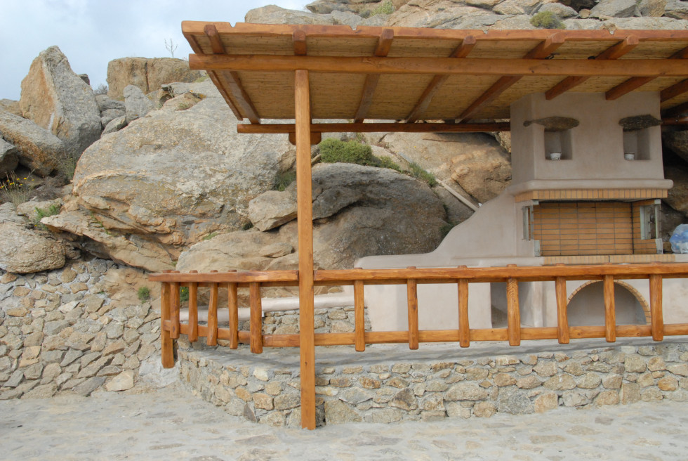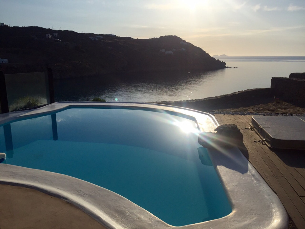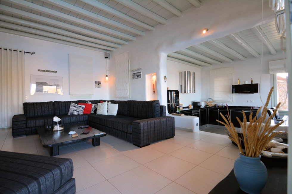 Located in the south of the island, facing Super Paradise, with an overview of the Aegean Sea and Naxos Island.Traditional cycladic architecture, large outdoors, walking dixatnce to the beach.