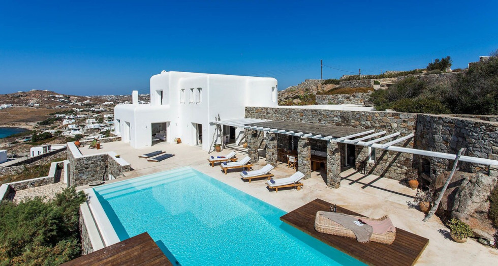 Esperida is a private villa located in the area of Aleomandra on Mykonos.