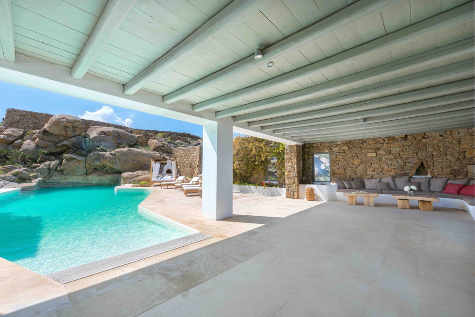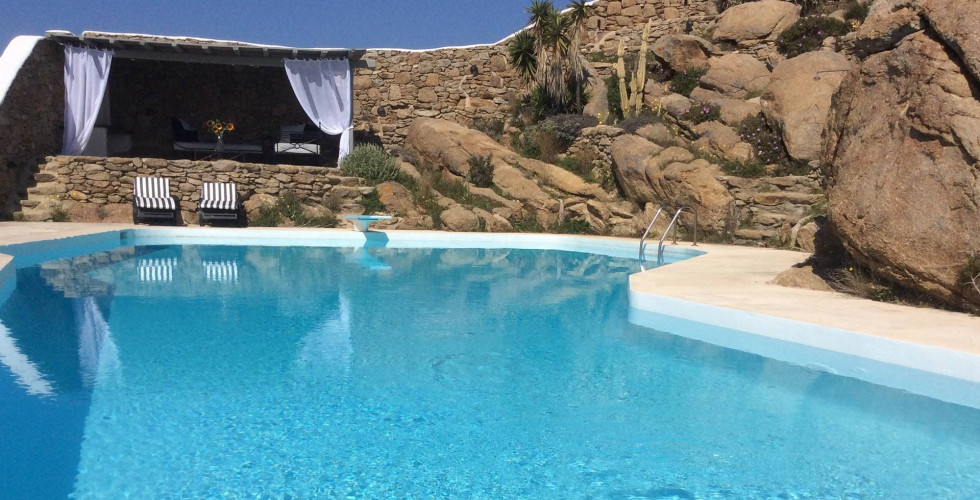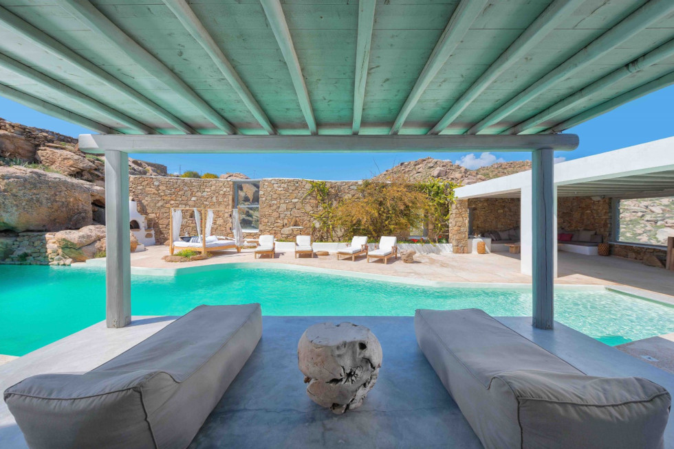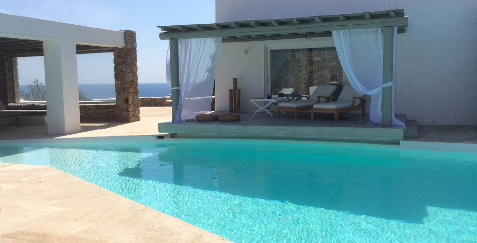 This luxurious estate is situated on a land of 10.000sqms in Pirgi, between Paradise bay and Super Paradise beach, just a few minute drive from the famous beach