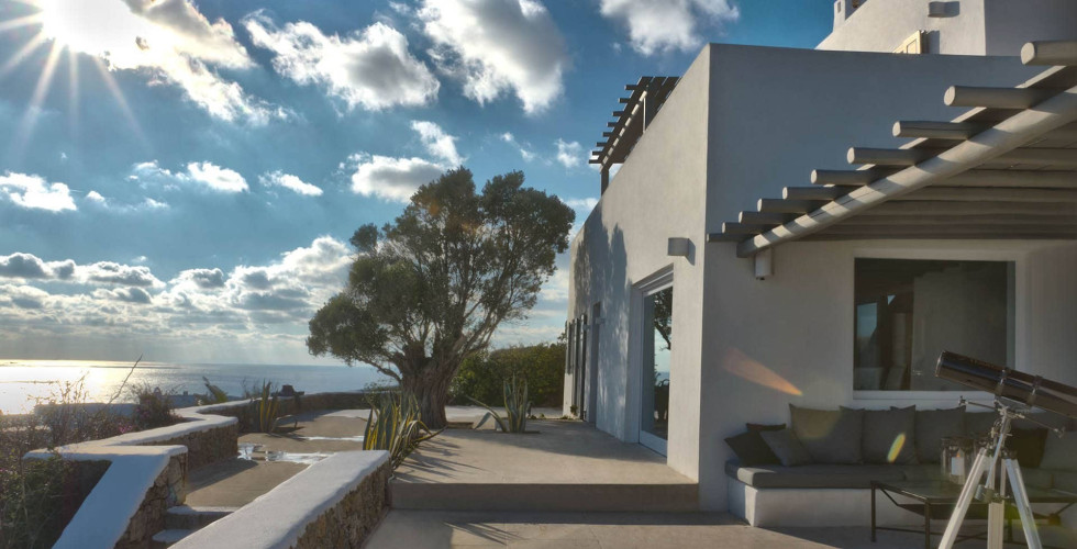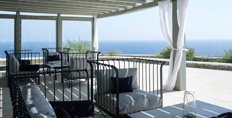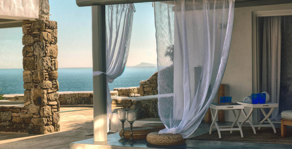 restaurants Jackie 'O and Cavo Paradiso. It offers 230 degrees of uninterrupted sea view of the islands of Naxos and Delos.