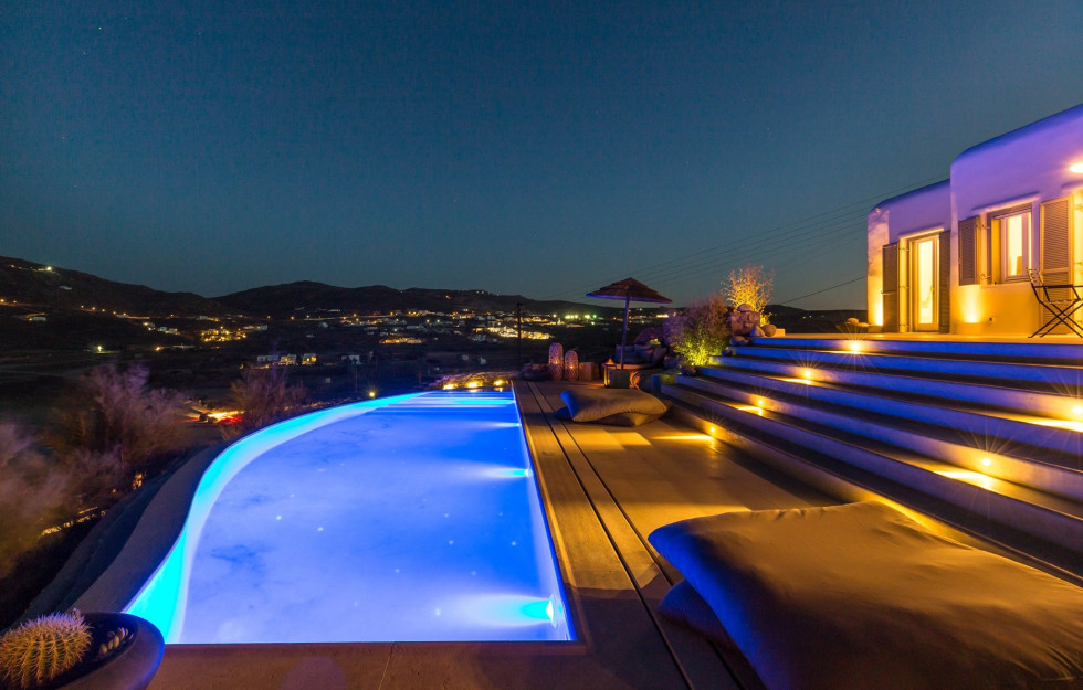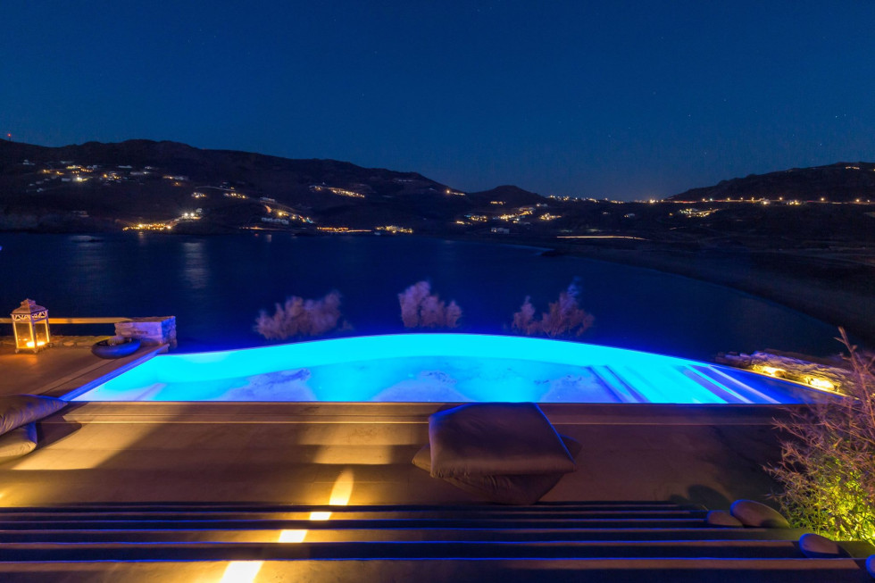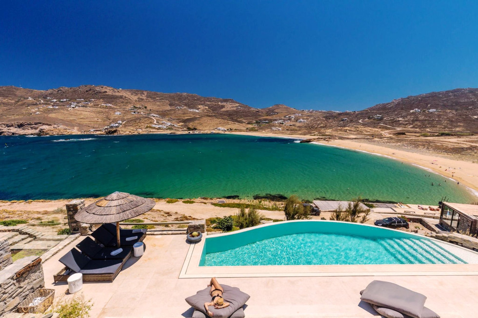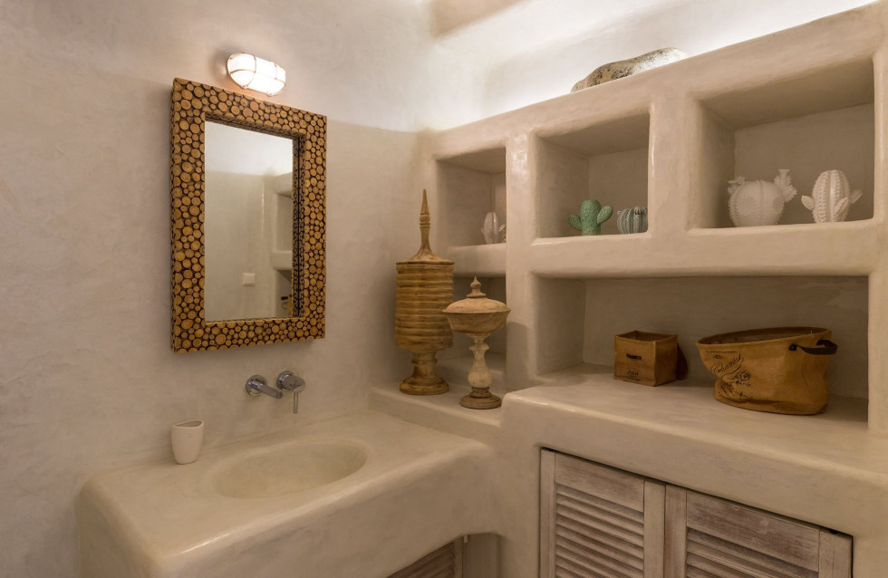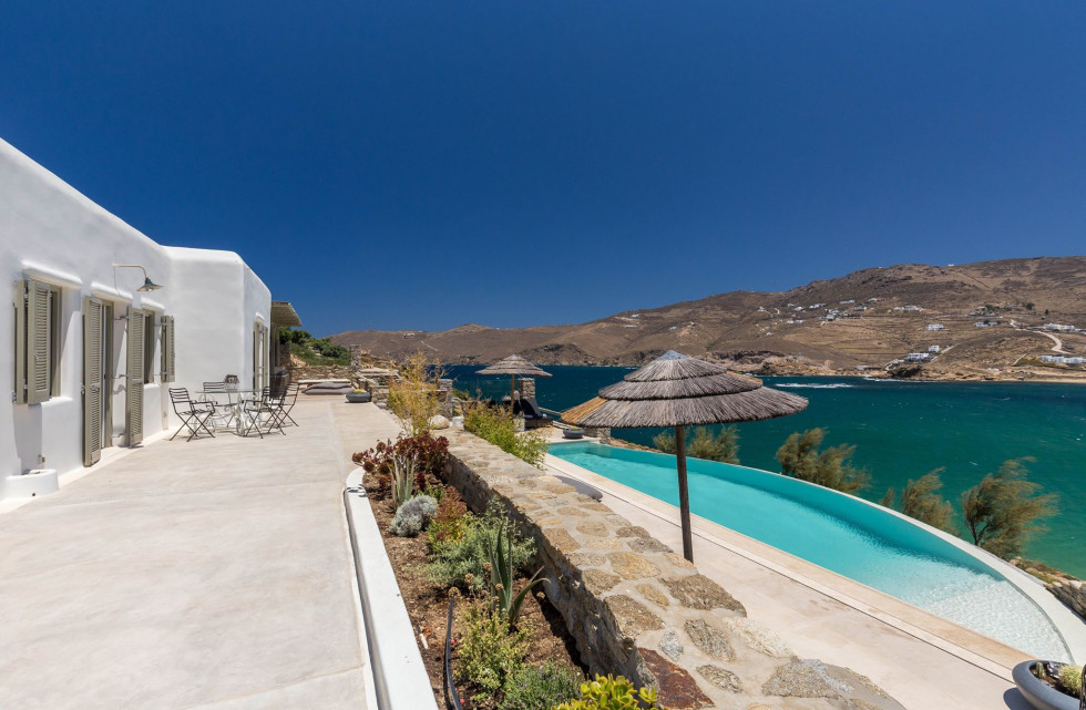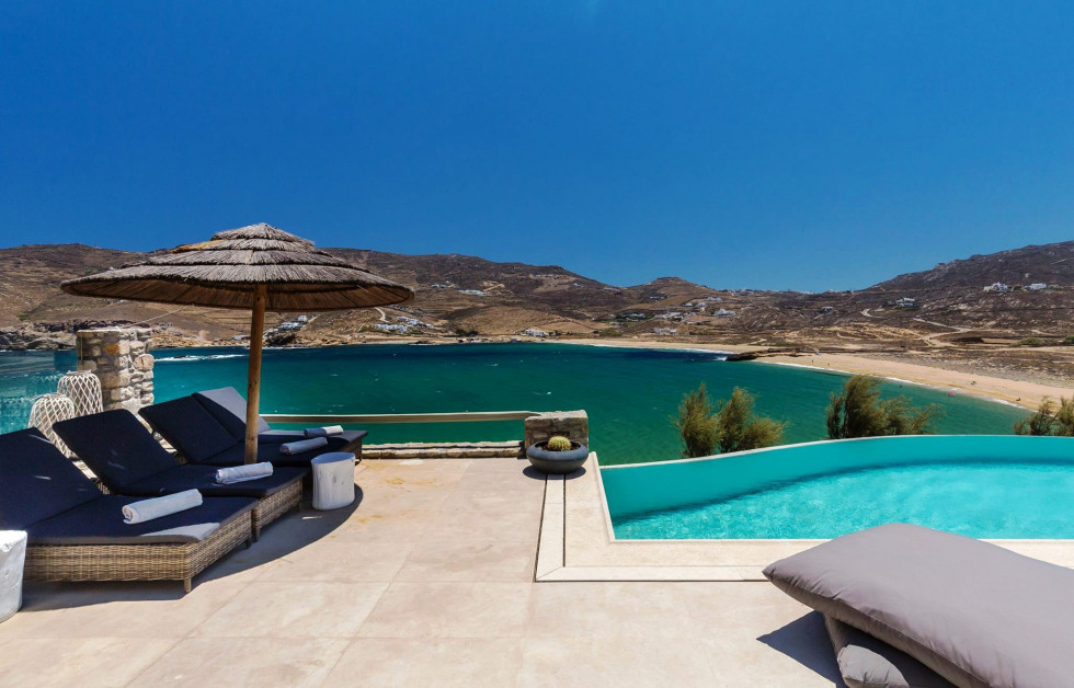 Two spacious suites can be found on the lower level overlooking Ftelia Bay with a shared balcony.