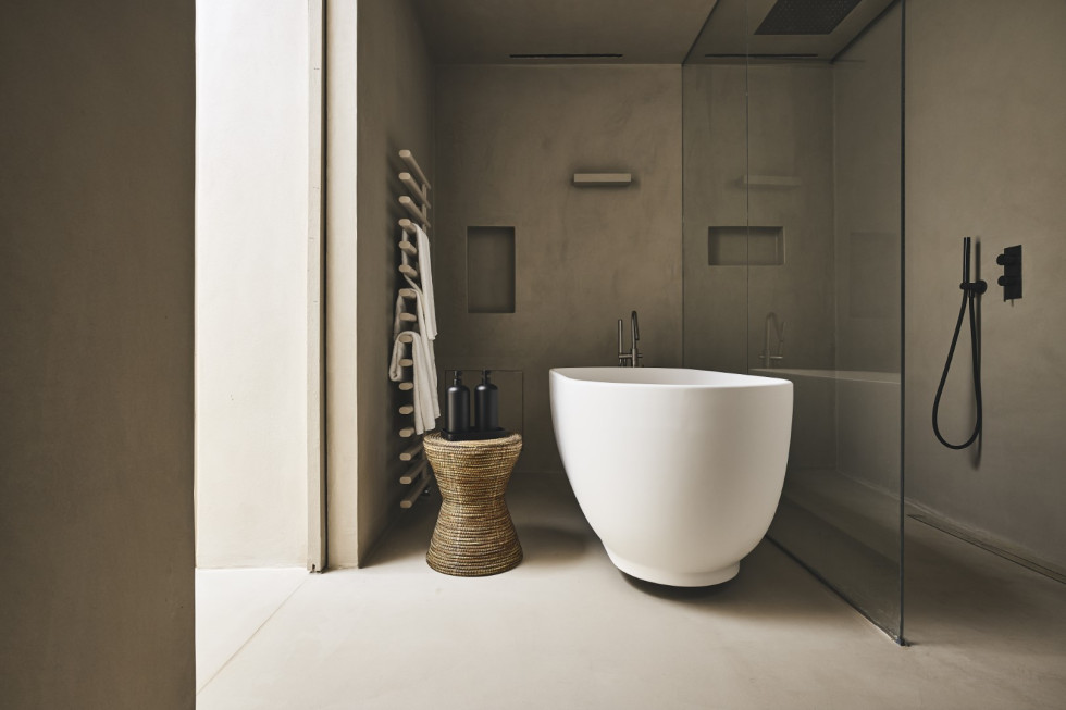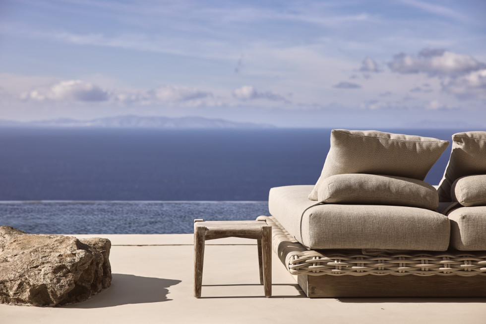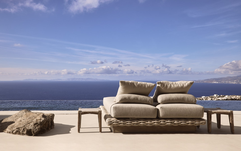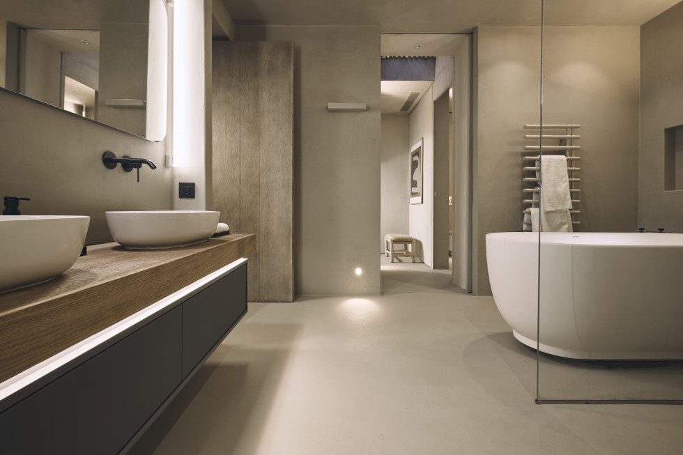 1 master suite 92 m2 with lounge/workspace area, en-suite bathroom with full-sized tub, dressing area, king size bed, mini bar, safe box, flat Smart TV, type-C fast charge ports, outdoor lounge, direct access to the main pool area, unobstructed sea and sunset views.