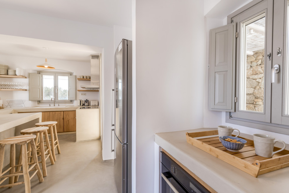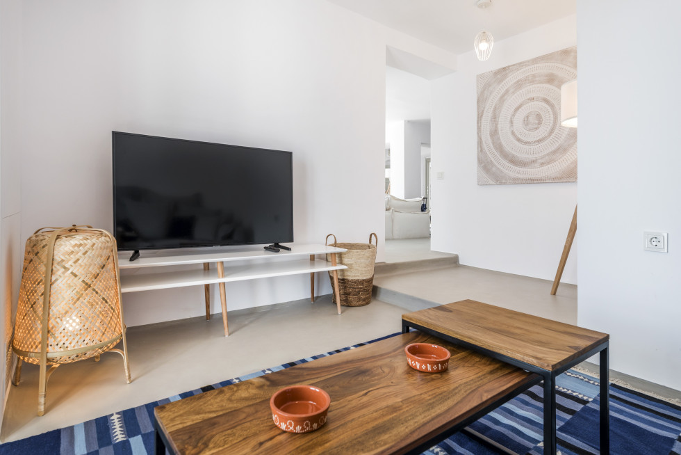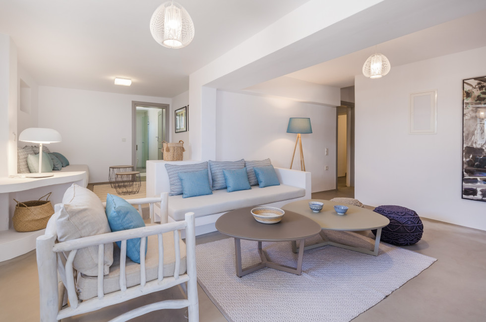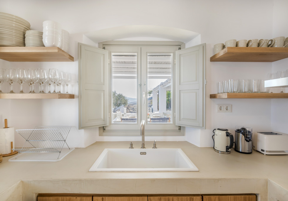 The villa offers to its guests an unobstructed sea view of “Panormos” bay and “Agios Sostis” beach and within a 2-minute walk they can enjoy the crystal-clear waters of the beach.