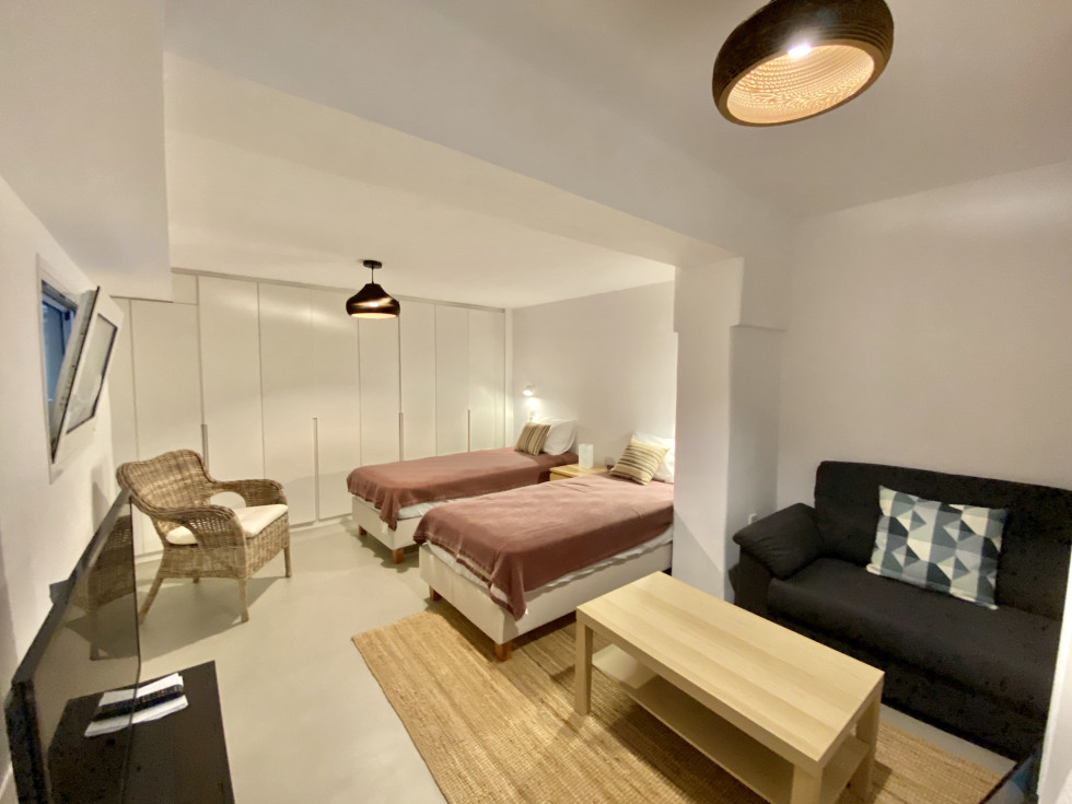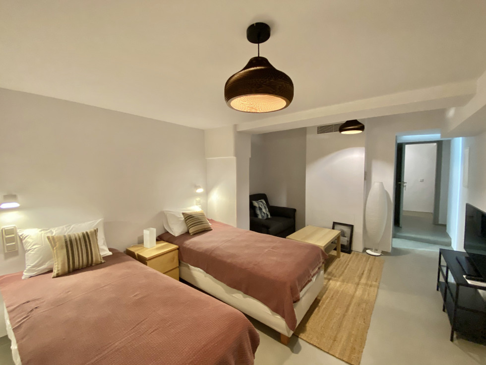 1 Bedroom (Queen size 160x200) apartment with lounge area, full bathroom and direct access to pool area. Also, 1 en-suite bedroom (2 single beds 90x200) (no view) and a separate laundry room