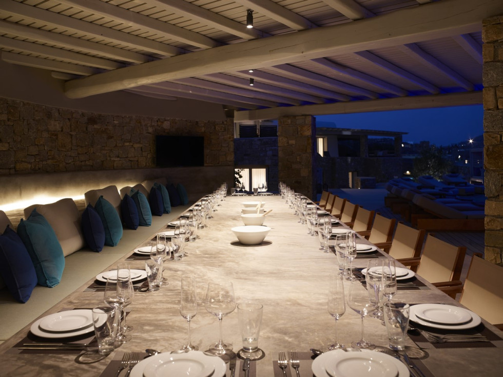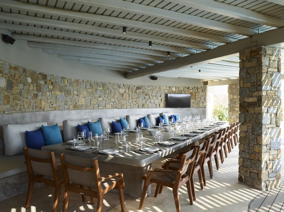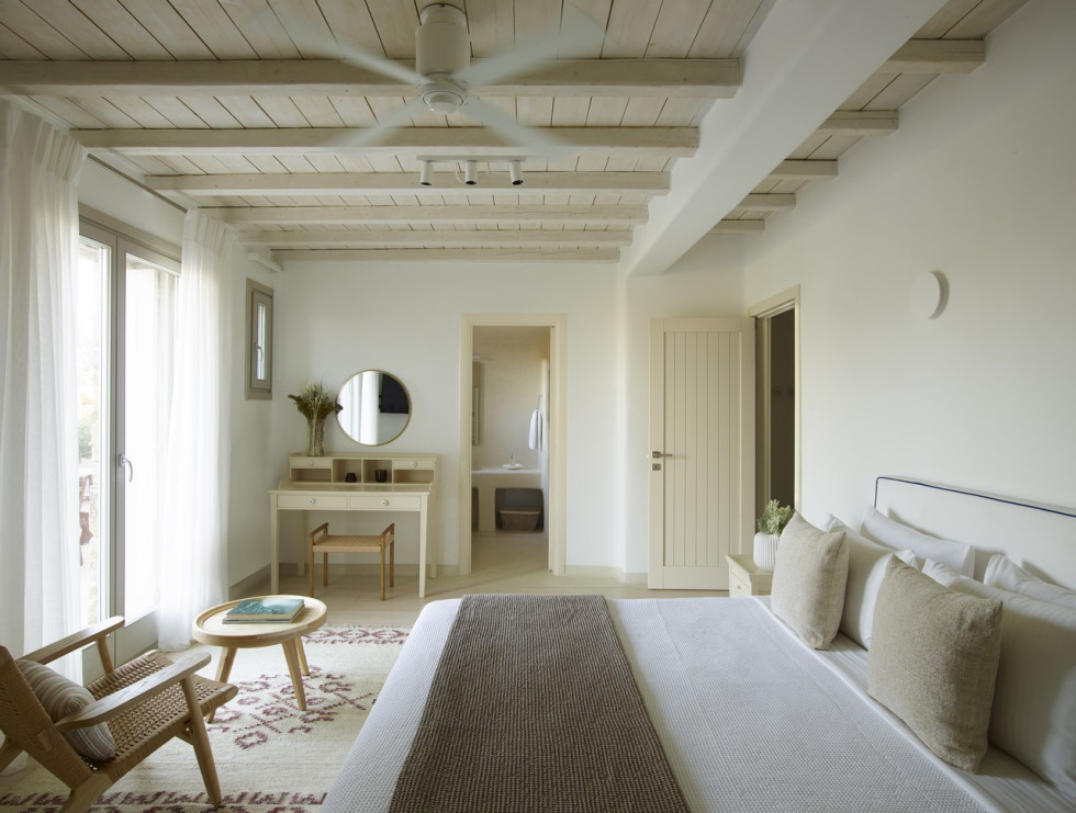 This spacious summerhouse is decorated in harmonic shades and features, sleeps 34 guests and offers a selection of versatile living spaces for easy entertaining and uncomplicated holidaying. Enjoy a good night’s sleep on a Simmons mattress, relax at the soft touches of elegant sophistication and Greek colours sofas and the view from the bedrooms.
