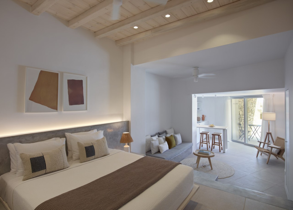 Located in a short distance, you will find the idyllic beaches of Kalo Livadi, Agia Anna, Lia, Elia, Kalafatis, renowned for numerous watersports activities as well as for their great restaurants such as Solymar at Kalo Livadi, Spilia at Agia Anna and Liasti beach club at Lia beach.