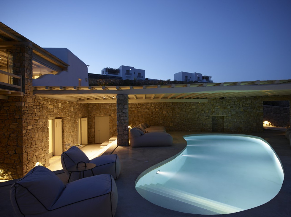 Located at a prime location in Mykonos at the area of Kalafatis in close proximity from the picturesque Town of Mykonos.