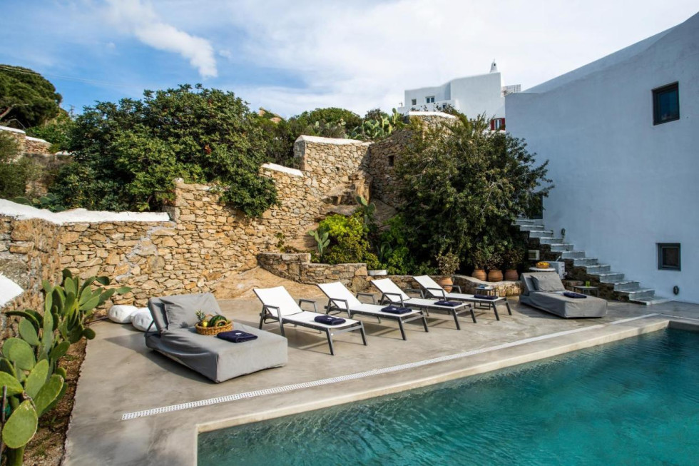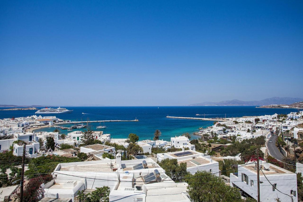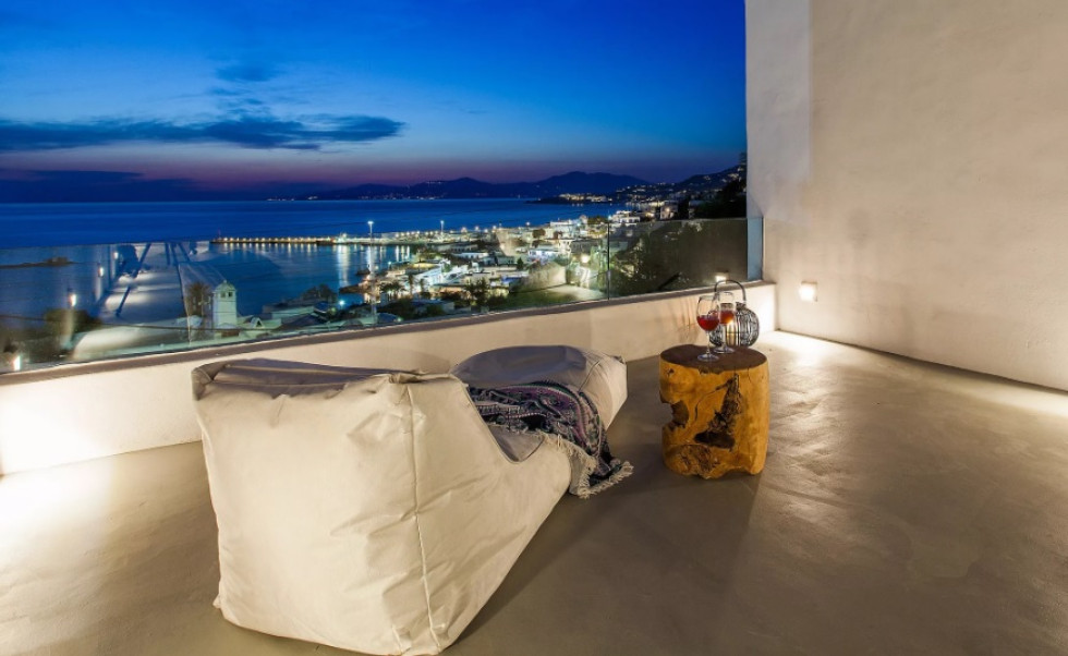Perched in a prime location with breathtaking views of the harbor and the endless blue horizon, Marevista Haven is a stylish sanctuary just moments away from the lively heart of Mykonos Town.