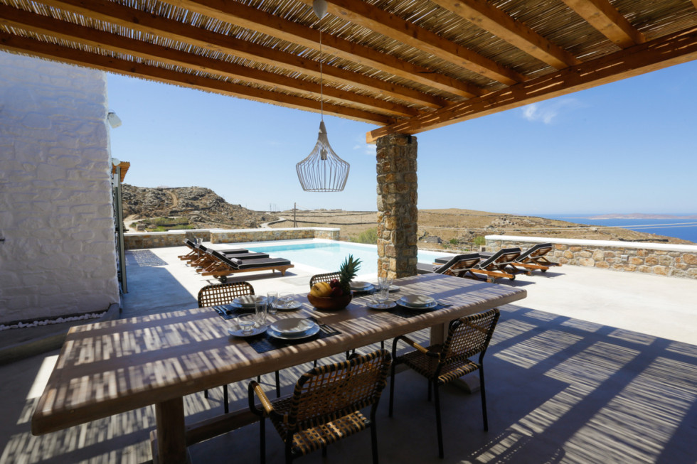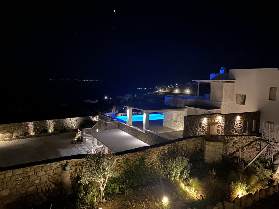 Located in a panoramic privilleged position, the villa offers luxury and fantastic views to the Aegean sea.
