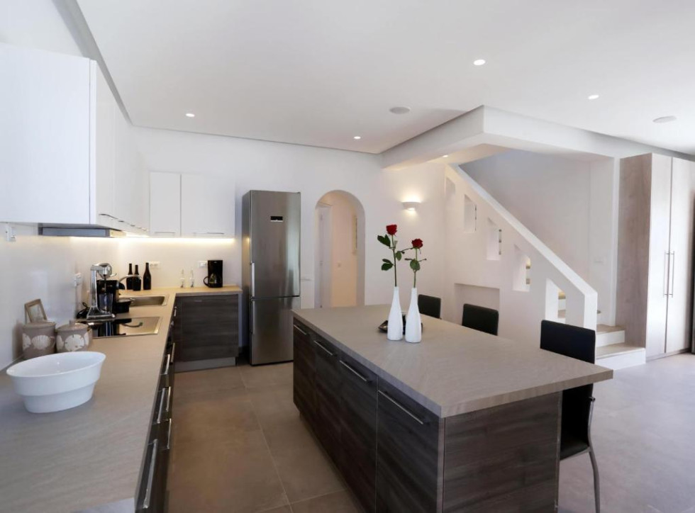 The ground level features one bedroom with double bed an en-suite bathroom, one wc and a fully equipped kitchenette.