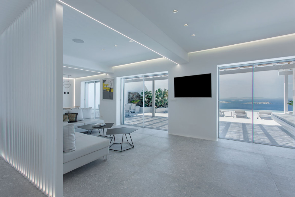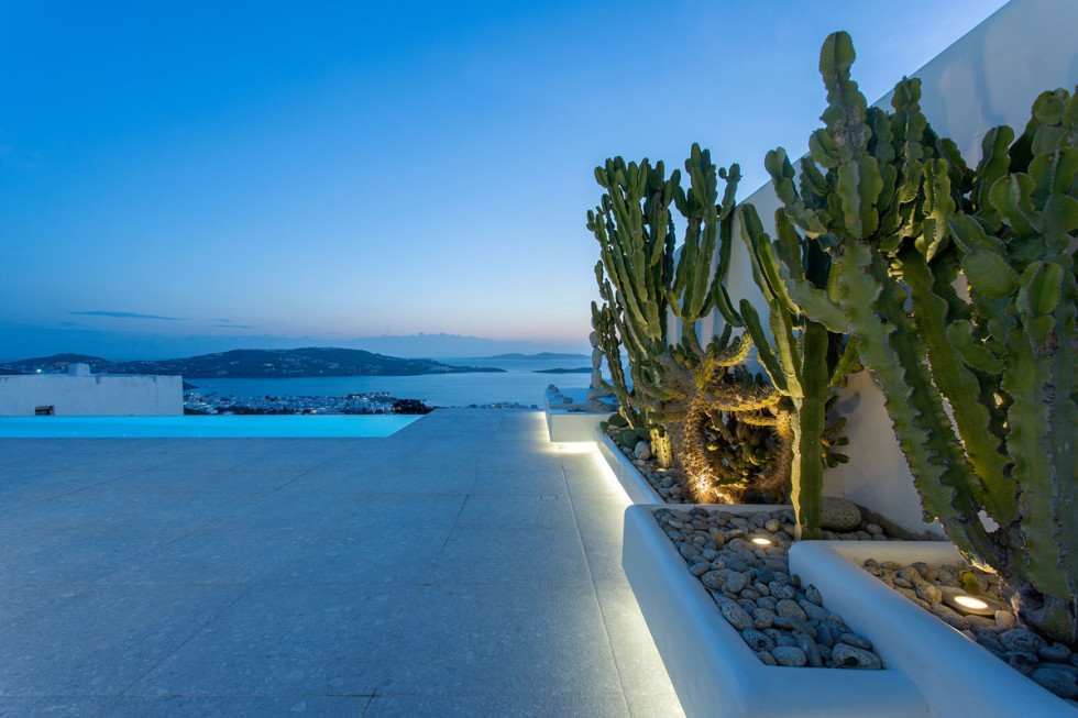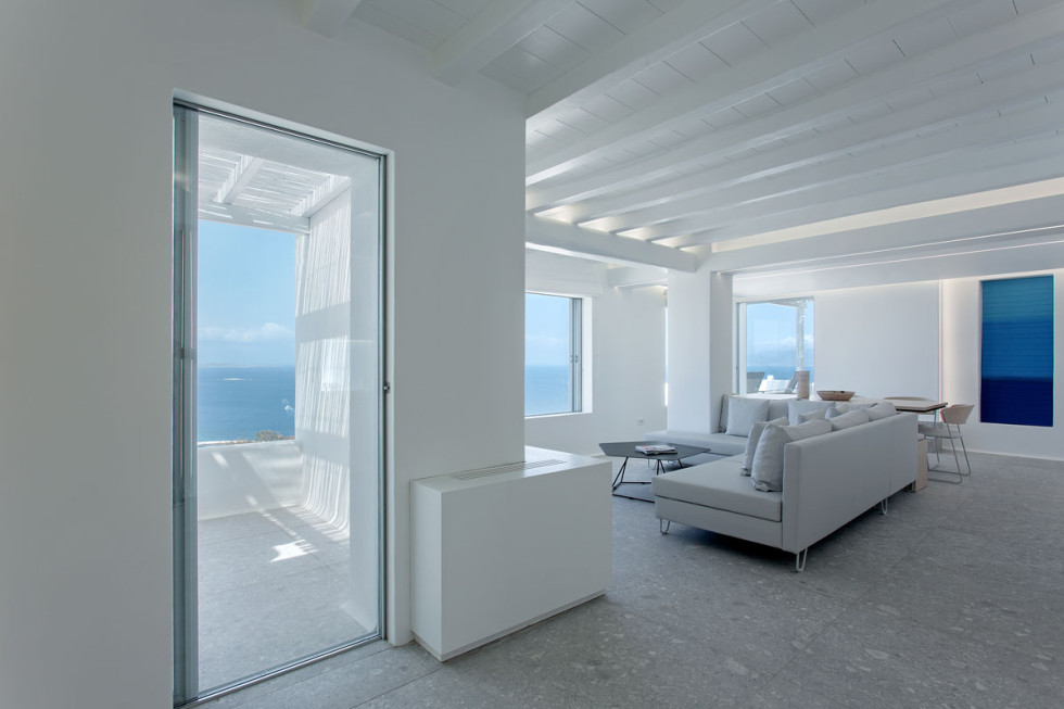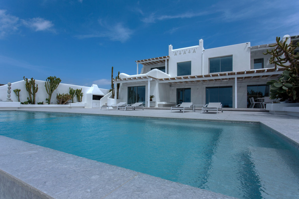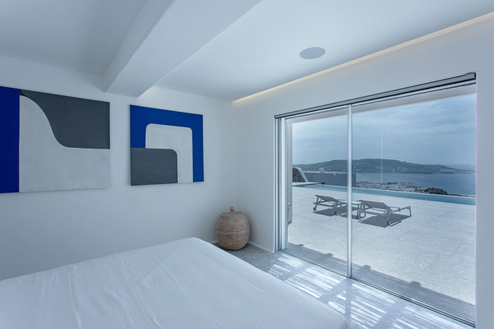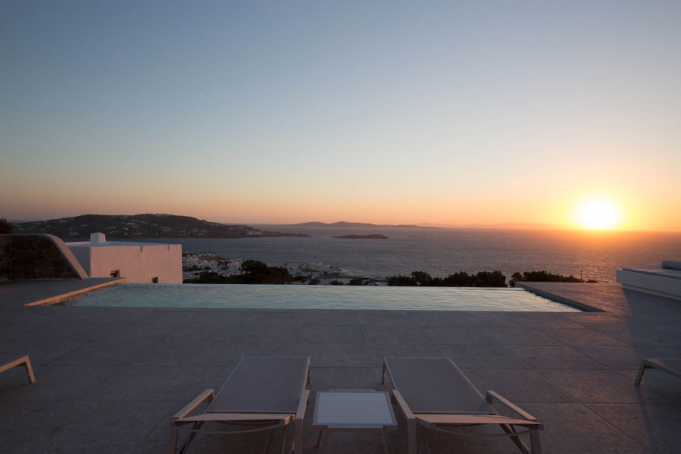 It sits on a hillside gazing out over Mykonos town and the sparkling Aegean sea with panoramic views from every vantage point, and most importantly a