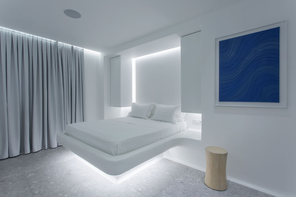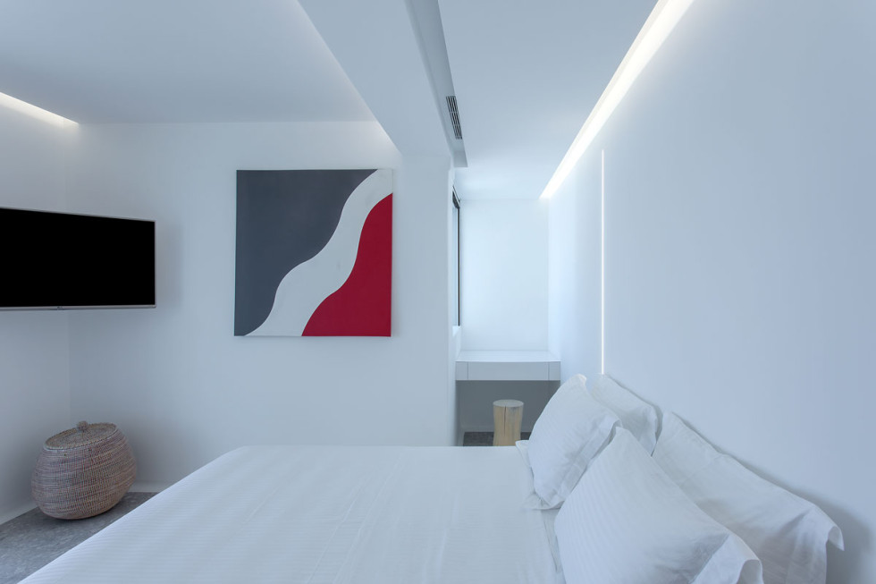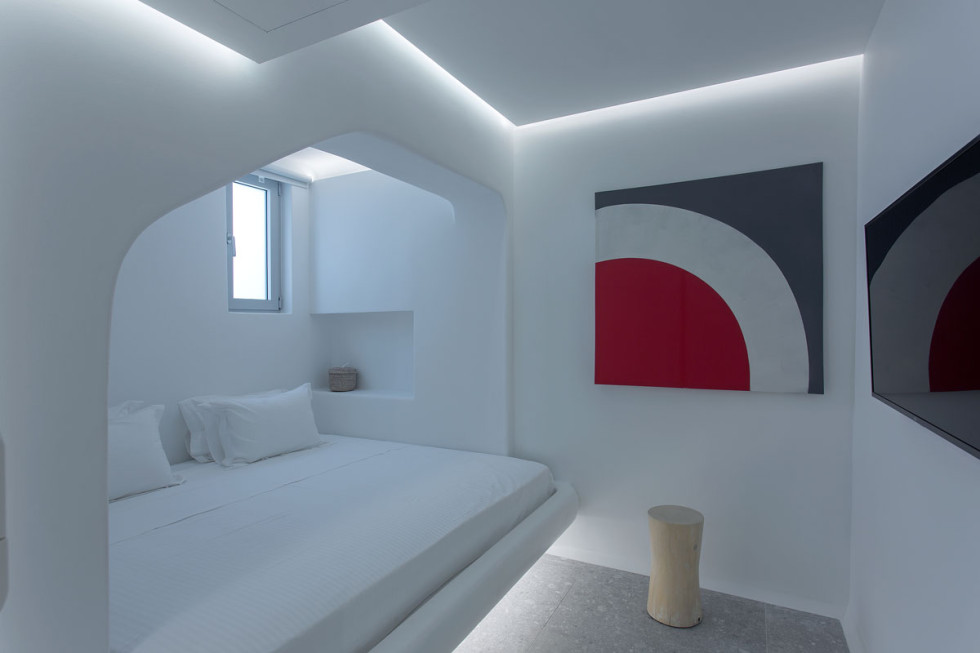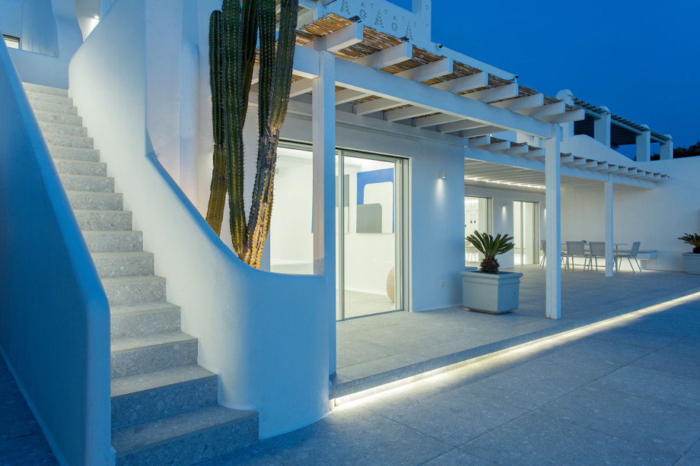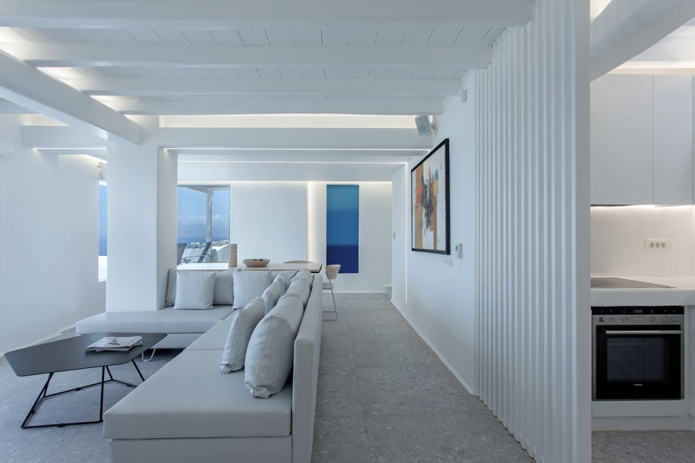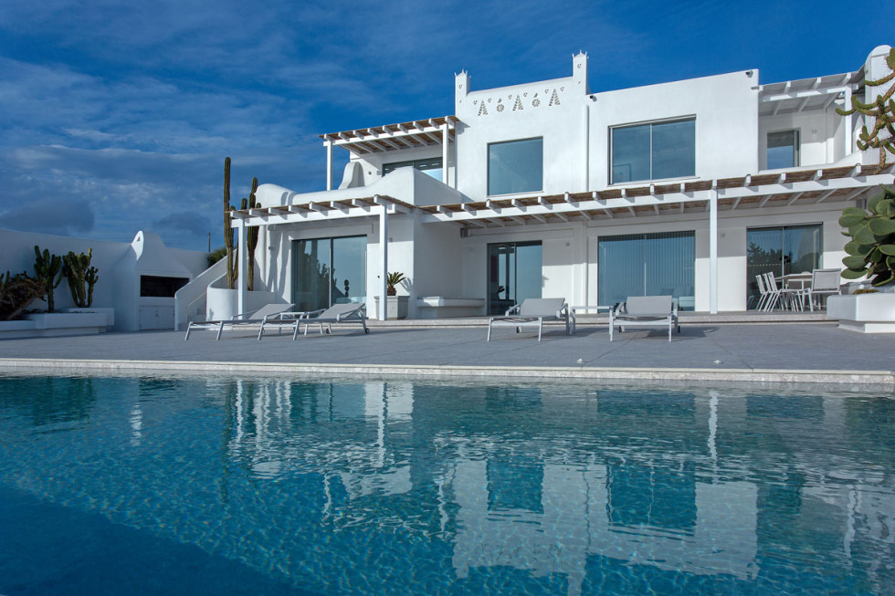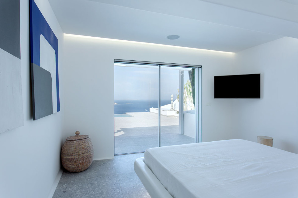It sits on a hillside gazing out over Mykonos town and the sparkling Aegean sea with panoramic views from every vantage point, and most importantly a