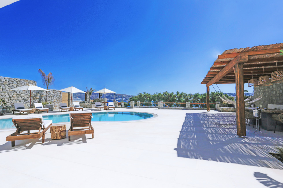 It is just a 15-minute drive from Mykonos town and offers its guests the ultimate Mediterranean experience, with a superb view of the Aegean Sea,