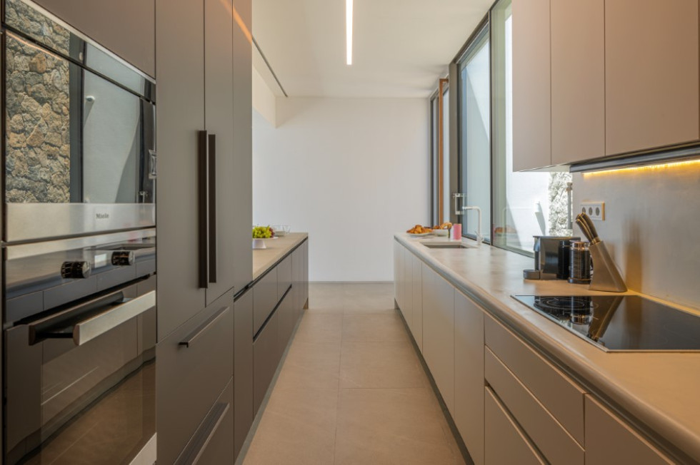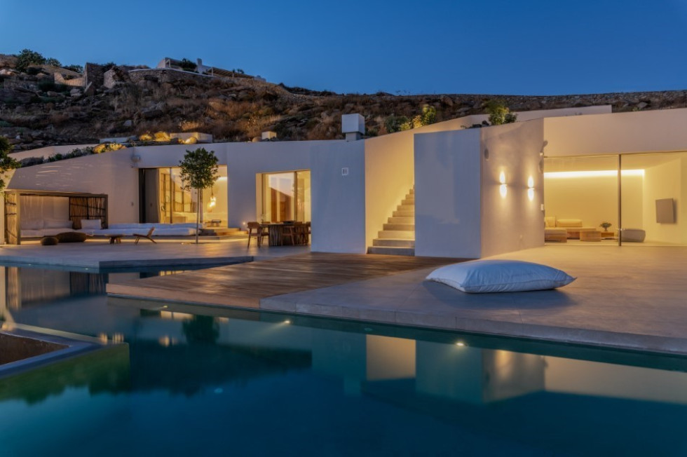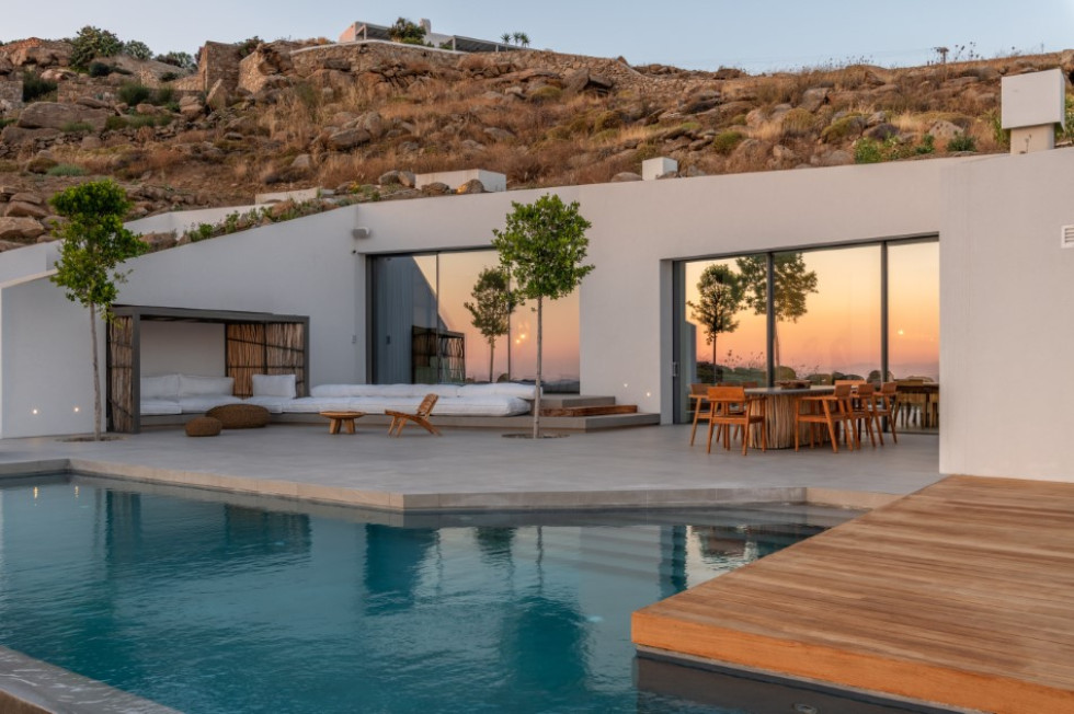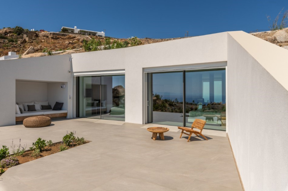 This is an extraordinary villa of unique subterranean architectural concept and minimalist style décor with wooden elements, whose construction was completed in 2019.