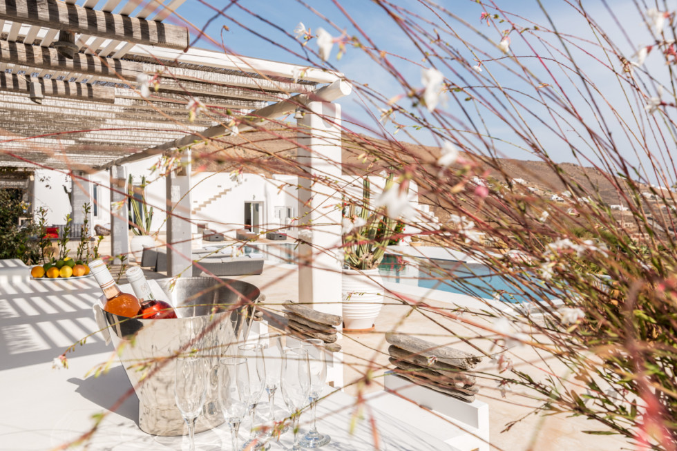 This wonderful property arises on hilltop overlooking the infinity of the Panormos Beach at only few minutes’ drive from Mykonos Town, with its enviable location is