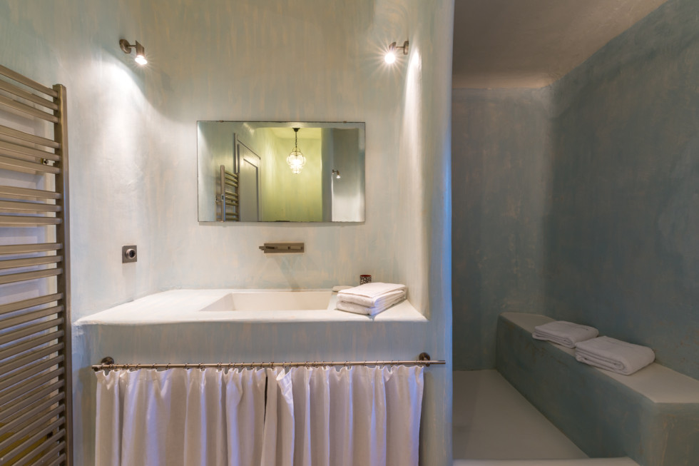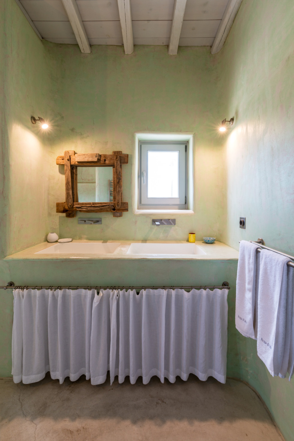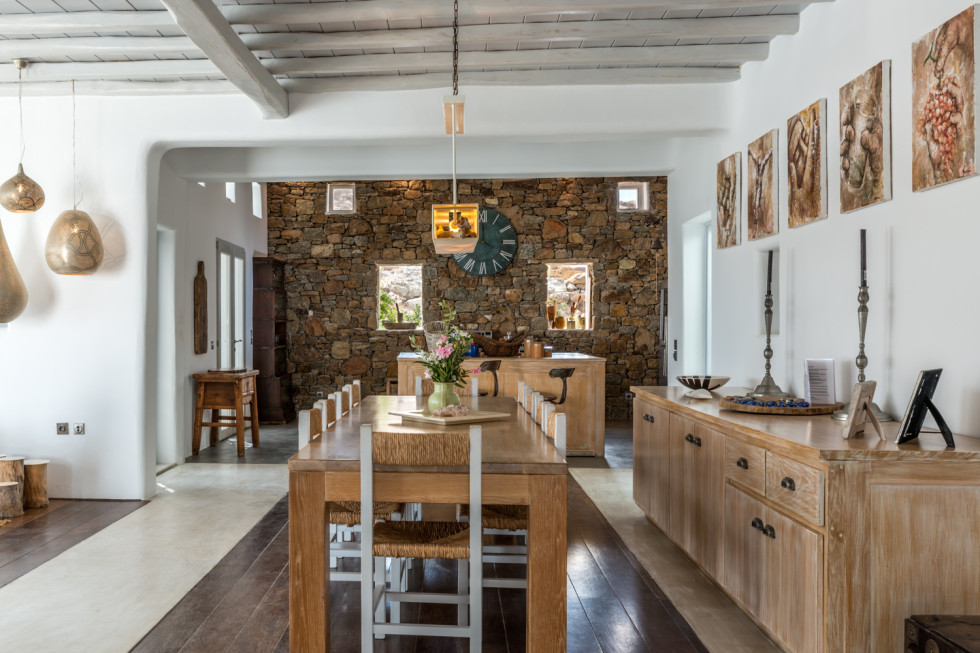 The interior is made with top quality materials and furnished to the highest standard, all in Cycladic style, bare rock and wooden inlays blended with bright tones