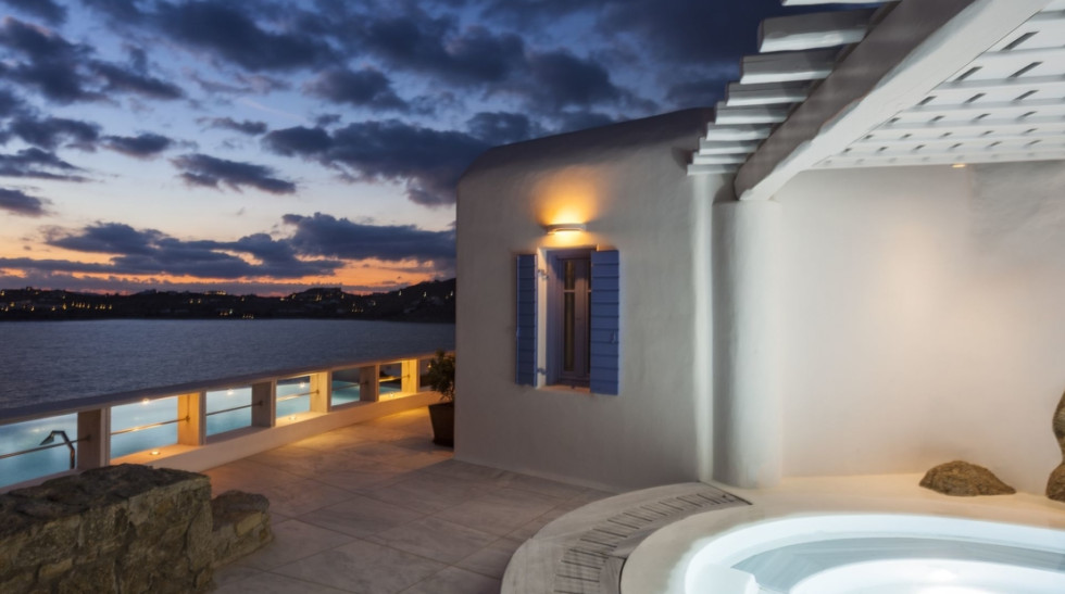 Villa Olympia is a spectacular waterfront estate located in the exclusive Agios Lazaros area of Mykonos. Boasting breathtaking views over the islands of Delos and Rhenia, this villa offers the ultimate combination of Mykonian elegance, privacy, and direct access to the sea via a private jetty. Designed for luxury living, Villa Olympia features expansive indoor and outdoor spaces, two fully equipped kitchens, a professional chef’s kitchen, and a wealth of leisure facilities including a Jacuzzi, gym, beauty parlor, Thalassotherapy spa, and Turkish hammam.