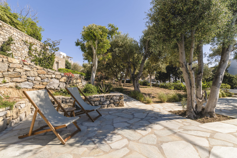 The outdoor areas are thoughtfully designed for privacy and relaxation, combining lush gardens, shaded lounges, and a private pool that invites slow, sun-soaked days.