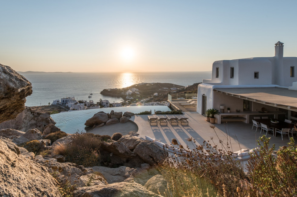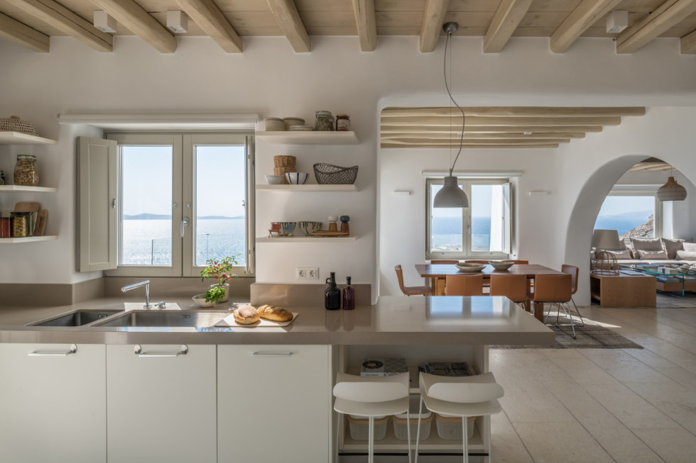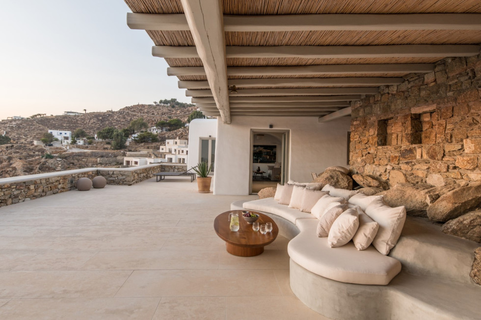 Just a short drive from Mykonos Town and nearby beaches, Villa Amara provides the perfect balance between privacy and proximity to the island’s vibrant lifestyle. Light-filled interiors, neutral tones, and natural stone elements create a calming atmosphere, while expansive outdoor spaces invite relaxation and effortless indoor–outdoor living.