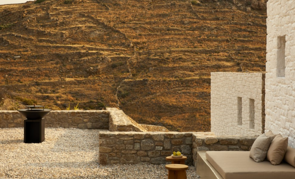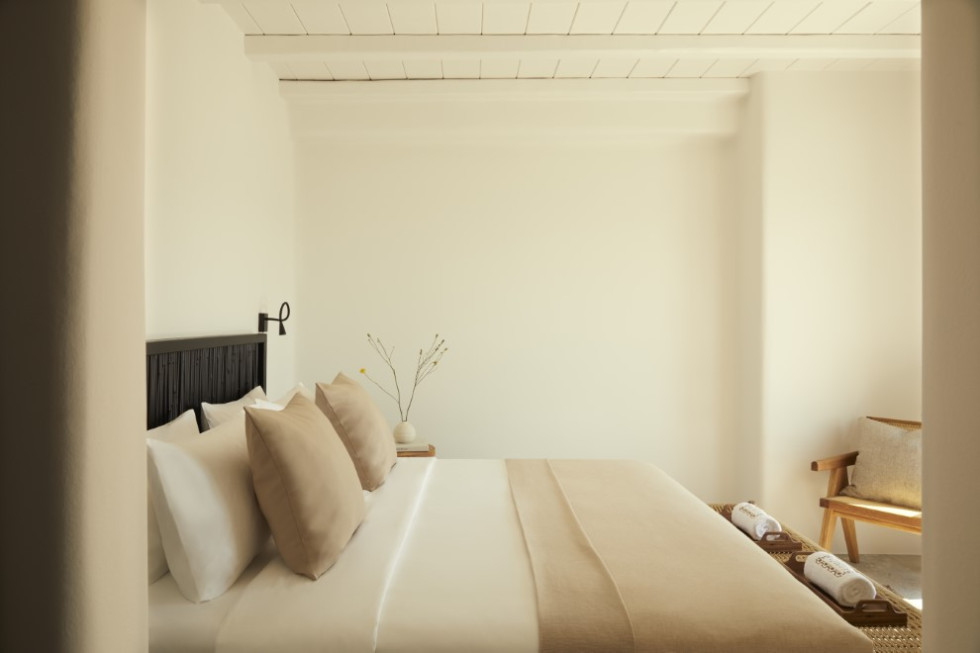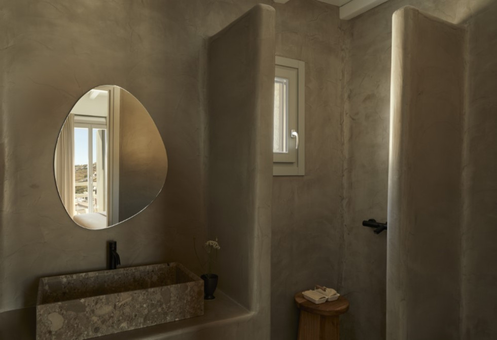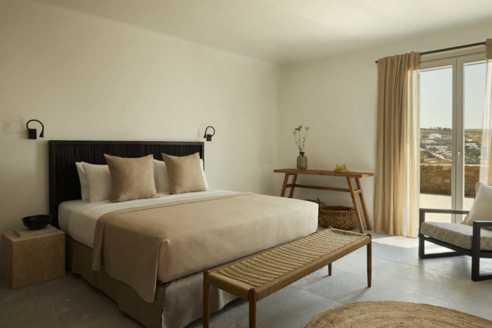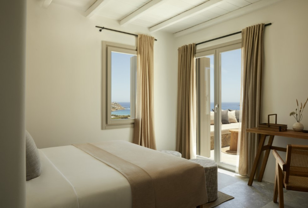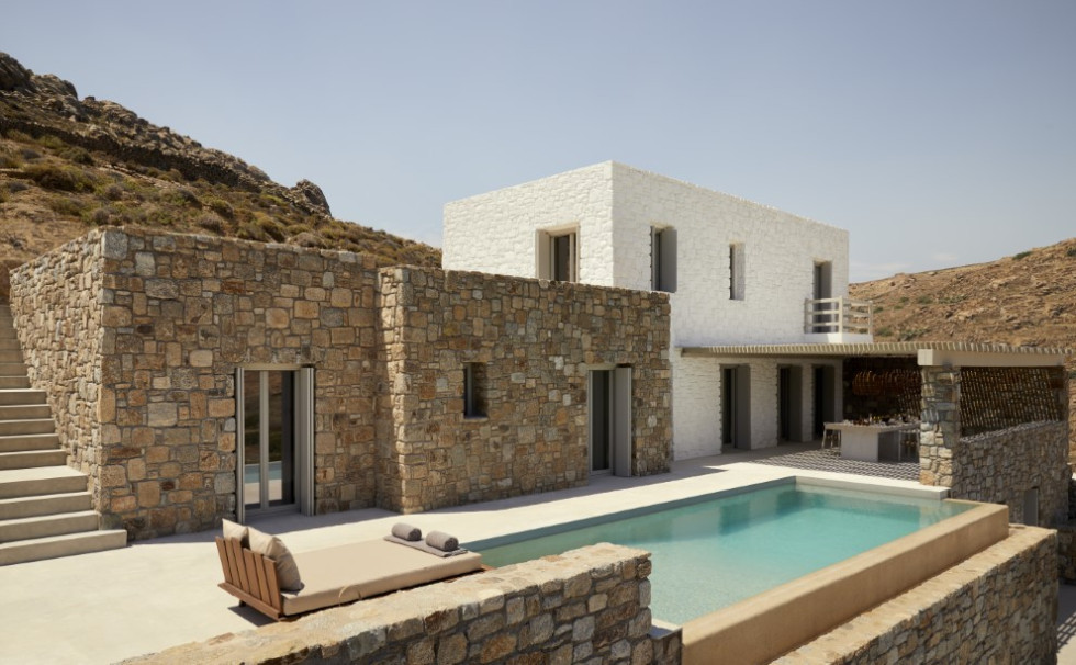 Inside, the villa features a harmonious blend of traditional Cycladic design with chic beige accents. Spacious areas with luxurious décor, a large dining area, and a fully equipped kitchen—complete with a wine cooler—ensure maximum comfort and elegance.